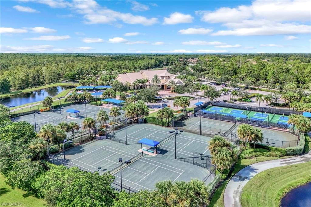 Welcome to your dream home at 7370 Mockingbird Court in beautiful Naples, FL! This charming 2-bedroom, 2-bathroom residence, with a versatile den that can easily be converted into a third bedroom, offers a spacious 1,805 square feet of living space, perfectly nestled on an 8,276 square foot lot. Step inside to discover a welcoming interior featuring both carpet and tile floors, ideal for comfort and style. The open living area is enhanced by new ceiling fans and pendant lighting, creating a bright and airy atmosphere. The kitchen is a chef's delight with brand new quartz countertops, a new sink and faucet, and a suite of new appliances including a dishwasher, refrigerator, and garbage disposal. The master suite offers a serene retreat with a new toilet in the master bath, ensuring modern convenience. Enjoy the luxury of central AC and gas heat throughout the home. The attached garage, equipped with a new garage door opener, provides ample space for parking and storage. Outdoor enthusiasts will appreciate the common outdoor space, private outdoor areas, and stunning lakefront views. The community amenities are second to none, featuring a pool, hot tub, gym, tennis court, and pickleball facilities. For those who love the water, the property is waterfront with lake views, perfect for tranquil evenings. Plus, there is room to add a pool, allowing you to customize your outdoor oasis. Additional features include a new gas hot water heater, added landscape lights, and a recently cleaned roof. Plus, enjoy the convenience of laundry in the building and a washer/dryer in the unit. Conveniently situated just minutes from shopping, dining, and all the attractions Naples has to offer, this home combines tranquility with exceptional lifestyle opportunities. This home is a true gem, offering a blend of comfort, style, and community amenities that make it a perfect place to call home. Don't miss the opportunity to make it yours!