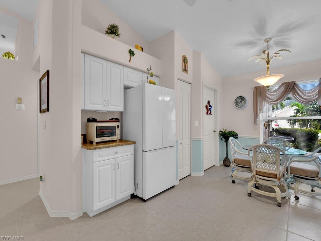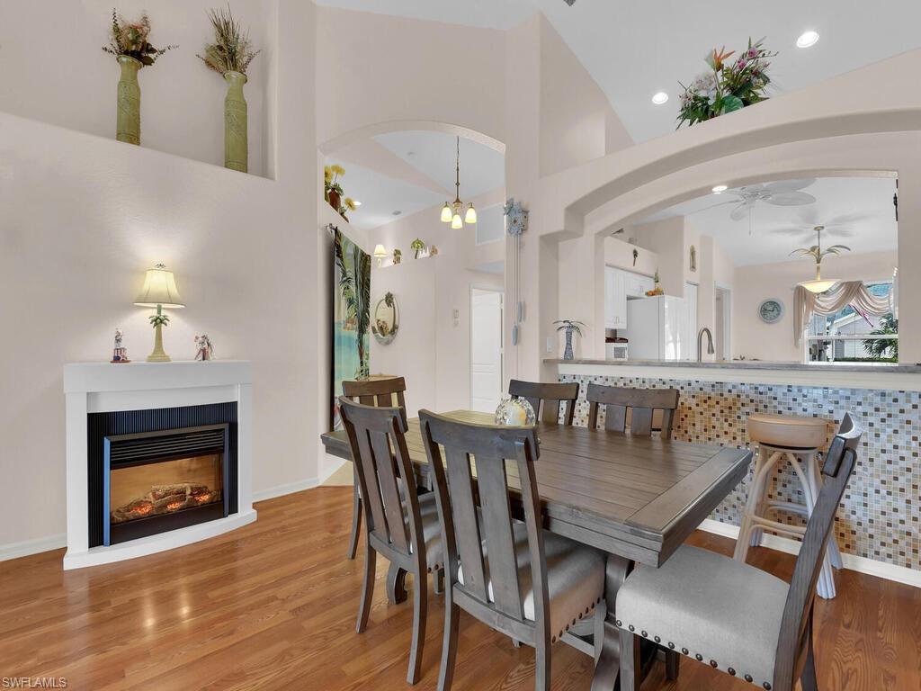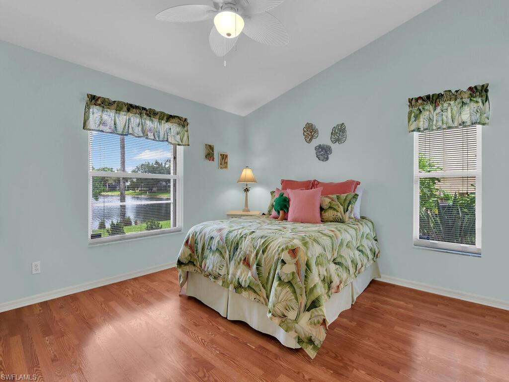 Welcome to Ibis Cove, a private gated community located in the heart of Naples. This beautifully maintained 3-bedroom, 2-bath villa offers a warm and inviting atmosphere with stunning wood flooring in the main living areas and tile in the wet zones. The open-concept layout features a bright and airy kitchen with a breakfast bar and casual dining space that seamlessly flows into the dining and living room. From here, sliding doors lead to a spacious screened lanai overlooking a tranquil lake—perfect for enjoying your morning coffee or relaxing in the evening. The split-bedroom floor plan provides a private master suite complete with a walk-in closet and an ensuite bath featuring dual sinks and a walk-in shower. Two additional bedrooms and a separate full bath offer plenty of space for family or guests. The home also includes a convenient indoor laundry room and a 2-car garage for added storage and functionality. Ibis Cove offers LOW HOA fees that include cable, high-speed internet, lawn care, exterior pest control, gated security, and access to an impressive range of resort-style amenities. Enjoy a heated pool and spa with sundeck, an expansive clubhouse with a fitness center, billiards, card room, library, meeting room and kitchen, as well as tennis and pickleball courts, scenic biking and jogging paths, and a playground. Centrally located in North Naples, this home puts you just minutes from world-class beaches, I-75, and popular shopping and dining destinations such as Logan Landings, Founders Square, and Pebble Brooke Plaza. Don’t miss the opportunity to make this fantastic home your own!