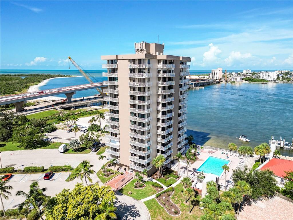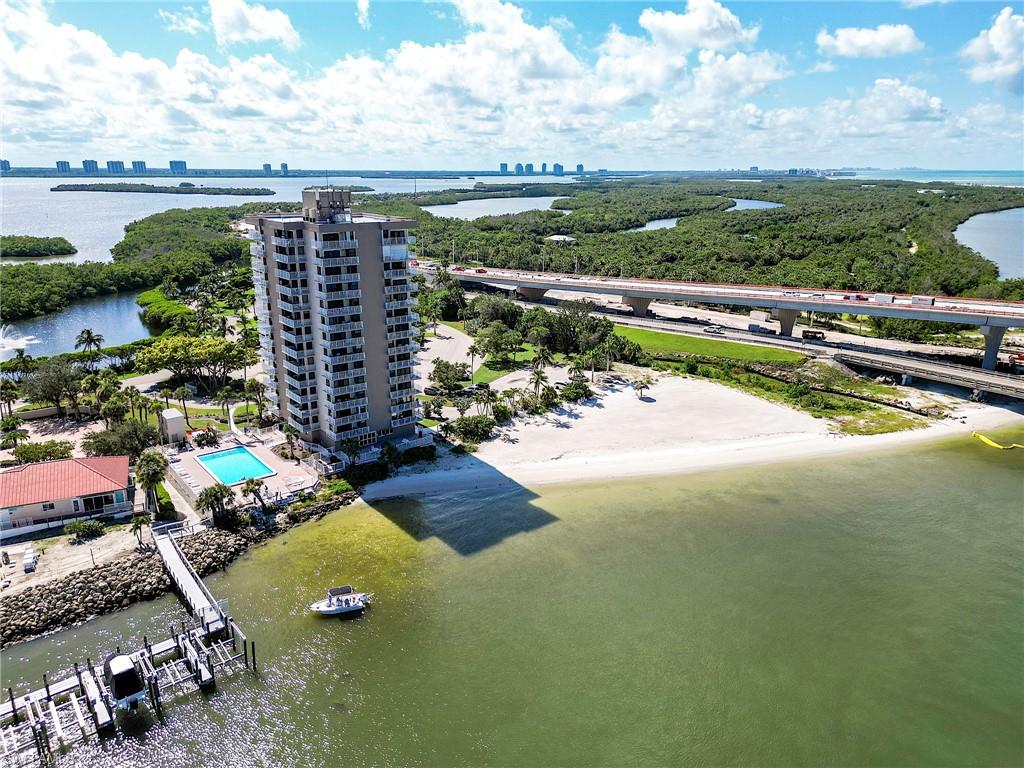 Highly desirable waterfront condo at Lovers Key Beach Club! This 11th-floor, true 1BR/1BA turnkey unit showcases sweeping views of Estero Bay and the Gulf of Mexico. Located directly across from Lovers Key State Park, the building offers its own private beach with tiki huts for ultimate relaxation. From the balcony, watch dolphins, manatees, and boats glide by. Weekly rentals are permitted, and per seller/management, some units have achieved gross annual rentals exceeding 40,000—making this an excellent seasonal retreat or income-producing property. Sold fully furnished and ready for use. Resort-style amenities include a heated waterfront pool and spa, barbecue area, community room, bike storage, and direct beach access. HOA fees cover cable, internet, water, and more.