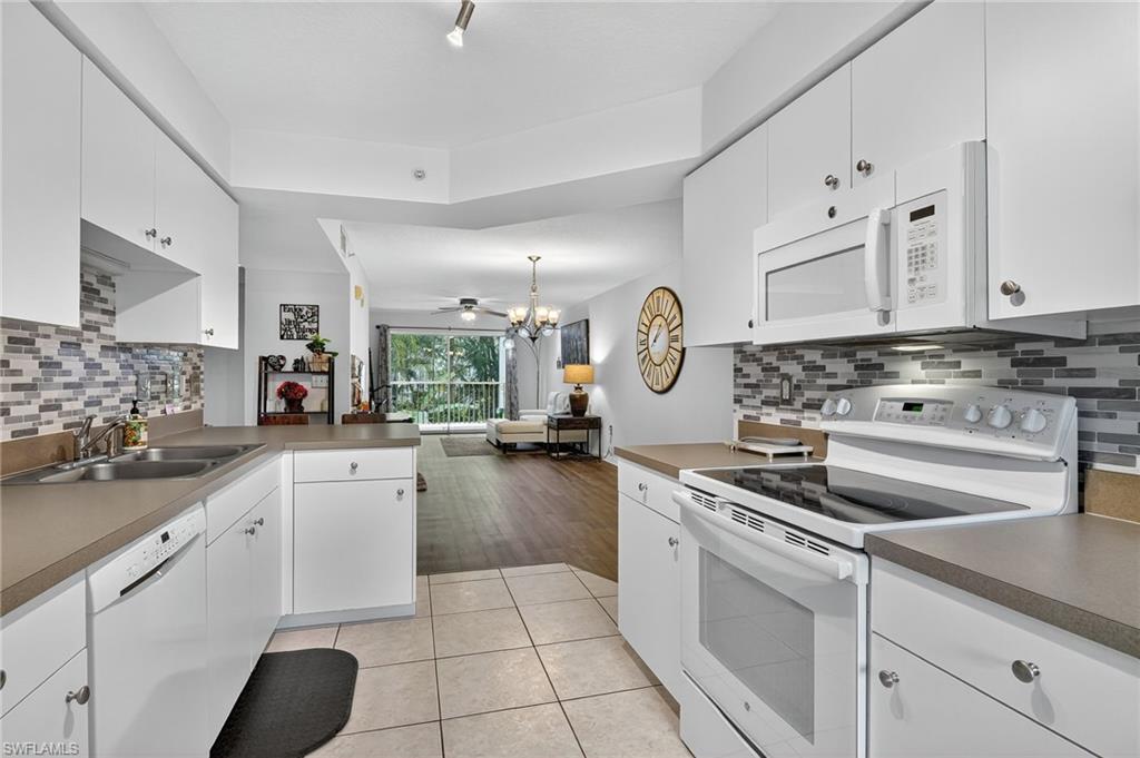 List price is starting price. Welcome to Bermuda Bay at Bay Forest, where coastal living meets comfort and convenience! This beautifully maintained 2-bedroom + den, 2-bath end-unit condo offers a rare combination of privacy, natural light, and access to world-class amenities—just 3.5 miles (8 minutes) from the beach. Step inside to an open, airy floor plan featuring luxury vinyl plank flooring and a tile entryway for easy care and lasting style. The bright eat-in kitchen includes white cabinetry, smooth-top stove, side-by-side refrigerator, microwave, dishwasher, pantry, and a modern tile backsplash. The space flows seamlessly into the dining and living areas, perfect for everyday living or hosting friends and family. The spacious primary suite is a true retreat, complete with a walk-in closet, double vanity, and walk-in shower. A versatile den provides the perfect space for a home office, craft room, or guest overflow. Fresh ceiling fans throughout the home (all less than 2 years old) keep the space cool and energy efficient. Relax and unwind on your private screened lanai, where you can enjoy peaceful views of lush landscaping and tropical surroundings. As an end unit, you’ll love the extra windows that bring in beautiful natural light and a more open, airy feel.