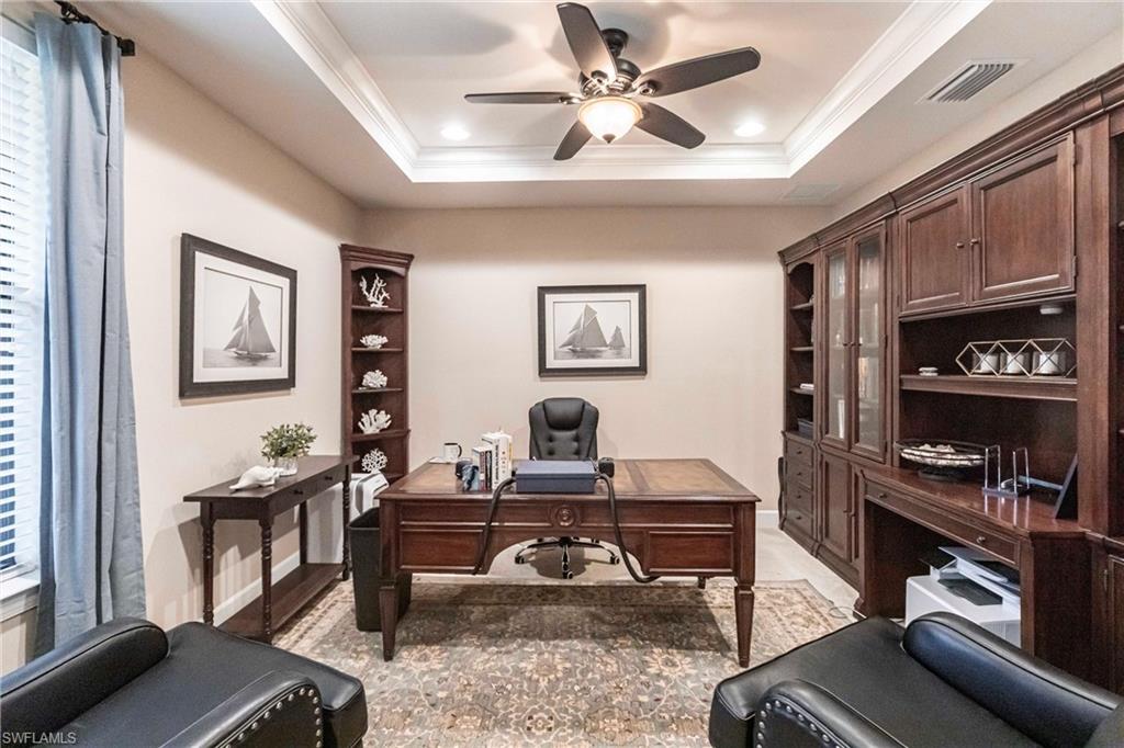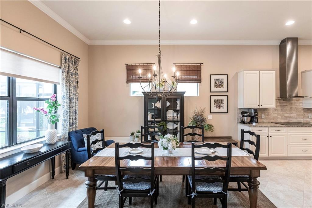 Magnificent views of expansive 243-acre lake from this spectacular executive class residence. Luxuriate in your private pool and spa. The amenity rich community of Corkscrew Shores features the Captains Club Bar & Restaurant, a resort style pool, pickleball, state of the art fitness center. This very prestigious gated community has low HOA fees and no CDD fees. It is conveniently located to shopping, dining, beaches, parks, and an international airport. An oversized living area with coffered ceiling and expansive wide water views will captivate your guests. The dining area has plenty of room for a large table and you will enjoy plenty of seating at the breakfast bar. Live comfortably and entertain graciously. This home offers a spacious office with beautiful French doors. Use this beautiful room to work at home or to just keep your life organized. It is also a flex space to use as you wish. You will love the spacious primary suite with unparalleled views of the lake and walk out to the pool and spa. There is a secondary ensuite featuring a spacious bath. The third bedroom is conveniently located to a third full bathroom. The three-car garage offers plenty of space for vehicles and storage. This is truly a spacious 3-car garage. Pull-down stairs to the attic further enhances storage. This is the one you have been waiting for!