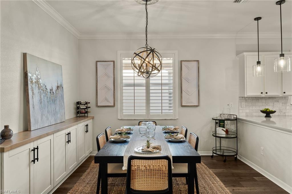 Look no further! This FURNISHED dream property, in the heart of Estero, boasts 3 bedrooms and 2 baths situated on a peaceful culdesac with stunning lake views. The Florida Mediterranean exterior showcases arches, stone masonry accents, a wrought iron screened entry and a tile roof that invites you in. As you enter into the home, you pass through an upgraded decorative glass front door that leads to an open foyer with impressive ceilings and crown molding throughout. The beautifully finished kitchen, equipped with NEW appliances, has an open concept feel that looks out onto the formal dining room. The kitchen offers ample cabinets and counter space, giving the culinary enthusiast plenty of room for storage and cooking! The kitchen feels like a day out at the café with the built in booth, quartz countertops, decorative backsplash and great natural lighting. This house has the perfect sized living room with ample seating space and decorative beams to give the home an elevated look. The gathering room looks out onto the gorgeous lake view and large covered lanai. Stepping outside you will find an extended screened in patio with to enjoy all of the wildlife views while you soak up the fresh air in the included above ground spa! The owner’s suite shares these incredible views along with an impressive primary bathroom. The bathroom offers a garden tub and a glass enclosed tile shower with a double bowl vanity. The two secondary bedrooms offer flex space for family, guests, office needs and more. The garage has a newly epoxied floor, hanging ceiling racks, a second refrigerator, and a portable generator. If you are looking for a beautifully furnished home with newer Samsung appliances/TV's throughout, freshly painted, move in ready with plantation shutters, aesthetic improvements, gorgeous views and space for recreation -look no further! Do not miss your opportunity to own this gorgeous home in a prime location. Bella Terra is a one of a kind community located just a few miles east of I-75 in Estero, off of Corkscrew Road. Bella Terra has lower HOA costs compared to other communities nearby while providing landscape maintenance, cable, internet, 24-hr gate guard, and more. This community is the perfect blend between amenities and nature with breath taking views of the 100 acres of beautiful lakes and the surrounding 400 acres of conservation preserves. Bella Terra amenities include a 7,000 sq. ft. Club House, with a fitness center, a resort style pool with a spa and waterfall, pickleball, tennis, bocce, & basketball courts, multi-use ball fields, an inline skate park, beach volley ball, butterfly garden, and playground.