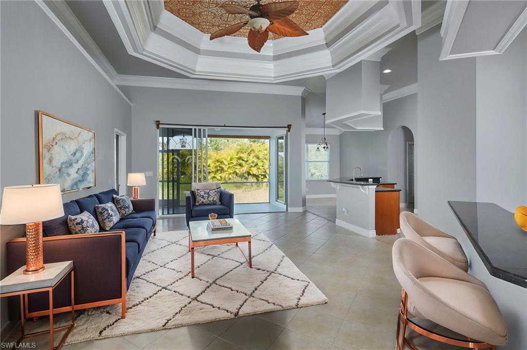 This must see 3 bedroom plus den, 2 bathroom home is an open floor plan with volume and tray ceilings in the dining room and master bedroom, adding to its spaciousness. Neutral tile throughout the home except the bedrooms. Immaculate 3 car garage and an attractive herringbone pattern paver driveway. Exquisite unique lighting fixtures, handmade, metal, imported front doors from Mexico, and special features adorn the home throughout. Large private lot with room to add a pool. Community highlights include: Super low HOA fees ($133/Quarter), Gated entry, Golf carts allowed on streets. Royal Palm Golf Estates is a public golf course with Driving range (membership is NOT required – pay as you play), Restaurant/Bar with indoor/outdoor seating located in the public Club house. New Publix less than 5 minutes, Marco Island 10 min., 5th Ave. 15 min. More Shopping, Restaurants & Hospital just down the road.