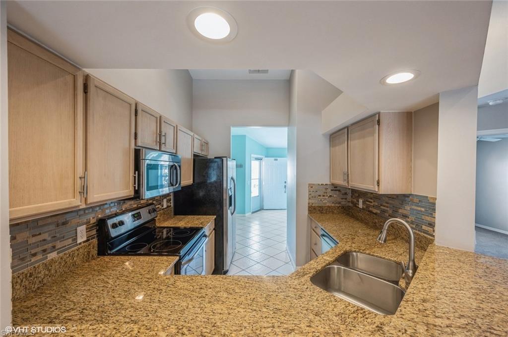 Light and bright condo overlooking a lake and fountain, great for watching birds or Naples sunset skies. This updated second floor condo located in Wiggins Lakes and Perseveres features a southern exposure, lakefront screened lanai, new HVAC, stainless appliances, granite counter tops and a large walk-in closets in the master. There is a carport with extra storage plus an additional assigned parking space. Wiggins Lakes and Preserves is a quiet community west of 41 in north Naples with low fees, featuring two pools, a tennis court and clubhouse. You’ll love this fabulous location close to the beach, restaurant and shopping and the Mercado. Come enjoy the Naples lifestyle.