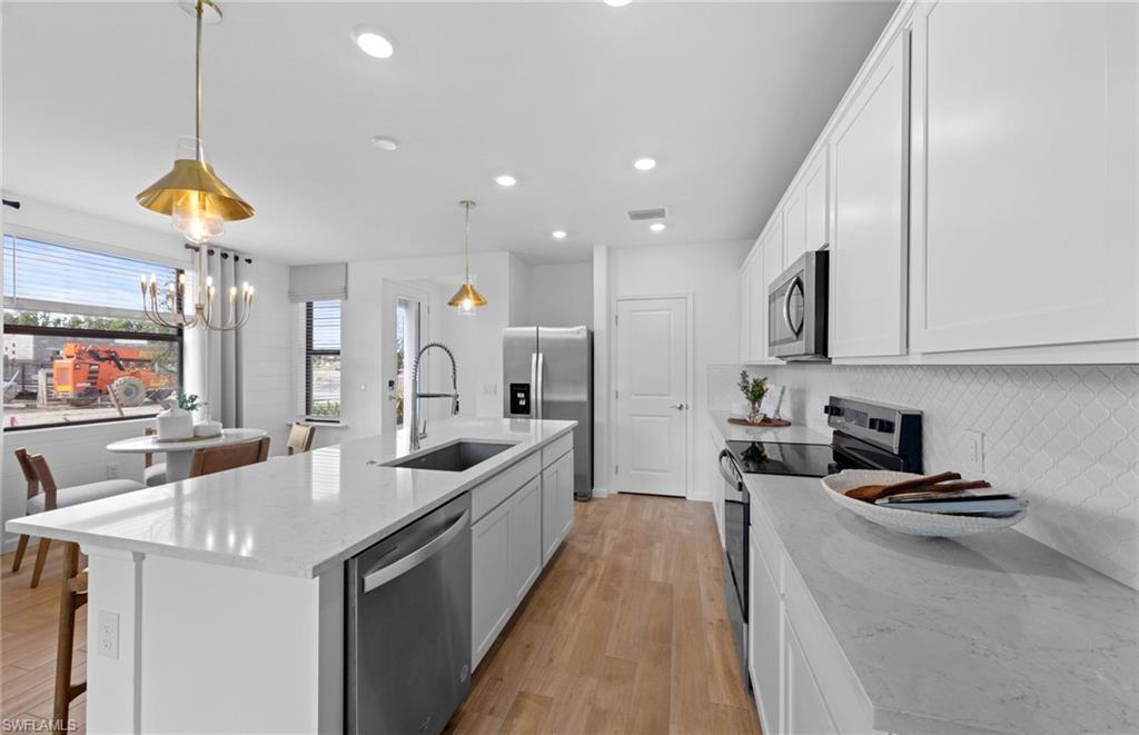 Move to Solis Grande! This Rowan is under construction, estimated completion March-May 2025! Discover the space you need in the Rowan. The Rowan is a beautiful brand new 3 bed, 2.5 bath, 2-car garage townhome by Pulte Homes in a highly desired, new construction community at the corner of Bonita Beach and Bonita Grande. Solis Grande will be the future homesite of 118 beautifully designed, luxury townhomes in a convenient location! This home will feature Quartz countertops, beautiful cabinetry, and tile floors. This split bedroom floor plan offers spacious bedrooms with walk-in closets, tiled showers, a dual sink vanity in the owner's suite, and plenty of storage spaces throughout. Stainless Steel Whirlpool kitchen appliances plus washer & dryer. This home comes equipped with a covered lanai, Smart Home package, smart garage door opener, move-in ready package (blinds on windows, refrigerator, washer, and dryer), luxe package (soft close drawers/cabinets, upgrades to tile walls, kitchen backsplash, kitchen sink, bathroom sinks, faucets throughout, door hardware upgrades, comfort height commodes, TV prep in gathering room, LED lights, pendant pre-wire), & beautiful Florida skies! Hurry up, you don't want to miss this opportunity! Low HOA, no CDD, and amazing location!