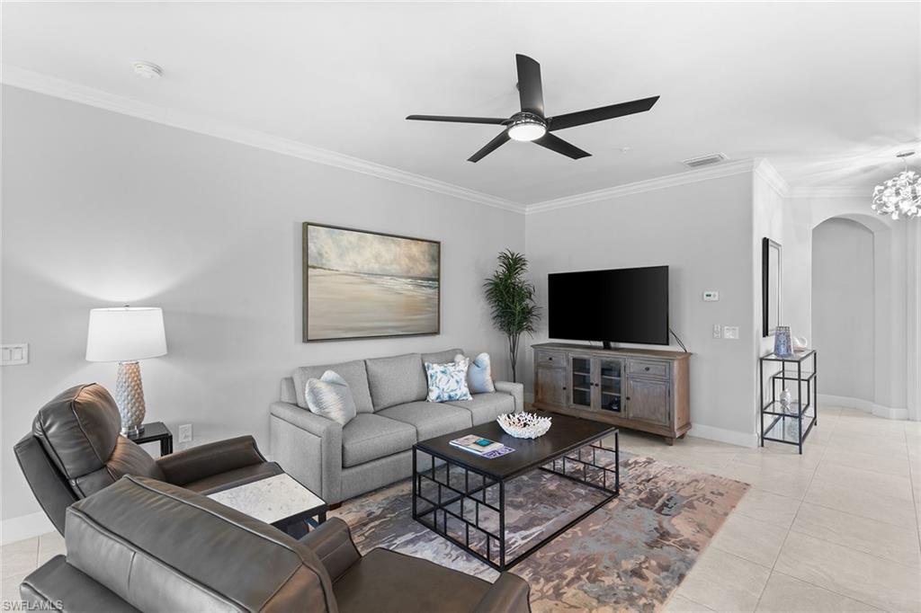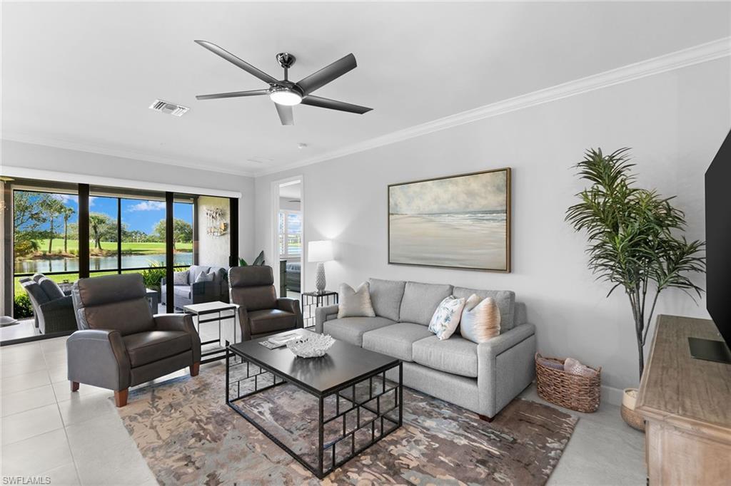 Step inside this turnkey first-floor coach home with deeded Full Golf Membership to TwinEagles Club in Naples Enjoy 36 holes of championship golf on site, ideal for enthusiasts of Southwest Florida's best courses. This two-bedroom plus den, two-bath coach home offers the ideal space for relaxed Florida living. Find peace of mind with hurricane-impact windows, doors and added Storm Smart electric screens securing the lanai. A short distance from Covent Garden's pool, leisure and convenience are within easy reach. The TwinEagles Club has recently completed an extensive clubhouse renovation, adding bocce courts, a Himalayan putting green and a remodel of the Nicklaus-designed Talon Course, enhancing this property's appeal for golf, active and social lifestyles.