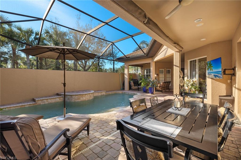 SELLER FINANCING OPPORTUNITY AVAILABLE! Welcome to 12656 Grandezza Circle, a true gem in the heart of Estero, Florida that offers 3 bedrooms, 3 bathrooms, a 2-car garage, heated pool & spa, and two screened lanais! This courtyard style home sits nestled within Savona in the Grandezza Community! Step into the front door and enter the spacious, oversized courtyard that offers a heated pool, a casita with one bedroom, one upgraded bathroom, and an efficiency kitchen. Also in the courtyard, are three different entrances to the main home. When you walk in, immediately notice the natural light that beams throughout! The main home offers 2 bedrooms, 2 bathrooms and a second screened lanai, overlooking the BREATHTAKING Lake Views! The upgraded dream kitchen will catch your eye! Notice the tasteful backsplash, stunning countertops, hidden-cupboard style pantry, water purification faucet and stainless-steel appliances. The coffered tray ceilings in the living room, dining room and master bedroom don’t go unnoticed, adding so much elegance to the home! Start moving in right away with no carpet to clean, as the home has wood and tile floors throughout. Head to the clubhouse for a staycation lifestyle! The Club at Grandezza offers a premier country club & golf (golf is not mandatory)! The clubhouse offers 53,000 square feet of luxury, including an exercise room, community room and so much more! Head outside to the resort-style pool and spa, cabana bar, exercise room, tennis courts, and an 18-hole championship golf course. This is the perfect example of Florida living! Location, Location, Location! Conveniently located within 3 minutes to the outlet mall, Hertz Arena, Restaurants, Stores, RSW International Airport and so much more! Don’t miss this opportunity to own this piece of paradise! Call me today for a private showing!