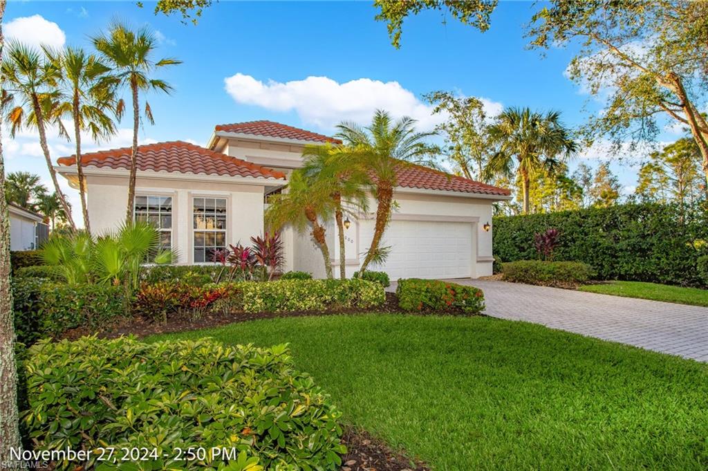 WOW! Live the Grande Life in this spacious home located in a private spot with views of the golf course. Priced to sell and ready for new owners. Just bring your toothbrush and everything is here for you. Completely turnkey with Florida Sunshine during the days and Spectacular Sunsets at night! Relax on your private screened lanai and enjoy the beautiful sunsets in the north western sky. This nicely upgraded “Turnstone” model great room style home situated on an end lot at the end of a cul-de-sac in Grandezza Golf and Country Club with optional golf membership. Upgrades include wood grain cabinets, granite counters, reverse osmosis water filter and stainless steel appliances in the kitchen and Hunter Douglas window treatments. 16X16 tiles are laid diagonally throughout the home. The expanded screened lanai area is upgraded with a brick paver pool deck. Aqua Link controls in home for the pool/spa solar system and brand new electric heater. Surround sound system throughout the home including the beautiful epoxy floor in the garage! The Turnstone boasts a spacious master bedroom with 11’ tray ceiling with master bathroom. Built in 2004 this home includes electric and manual hurricane shutters and a Heritage Weather Guard Garage door with whisper quiet drive. Offered turnkey furnished for new buyer. Grandezza has an active year-round social lifestyle with resident activities, a remodeled gorgeous 53,000 square foot clubhouse, resort pool and spa with poolside cabana restaurant, ballroom for dinner and events. Optional membership in Grandezza 18 hole championship private golf course. Near Coconut Pointe Town Center, FGCU, Publix shopping center, Miromar Outlets, Gulf Coast Town Center, Hertz Entertainment Arena, hotels, restaurants, beaches and RSW airport. Come live the Grand life in Grandezza! Motivated Seller!
