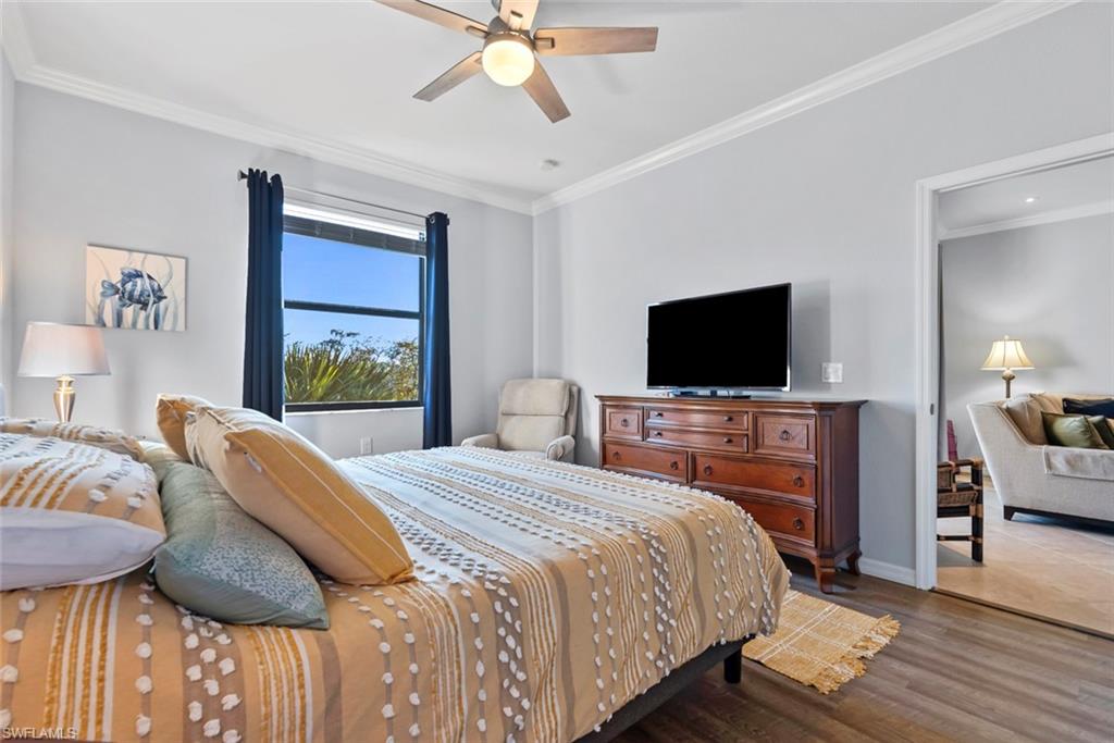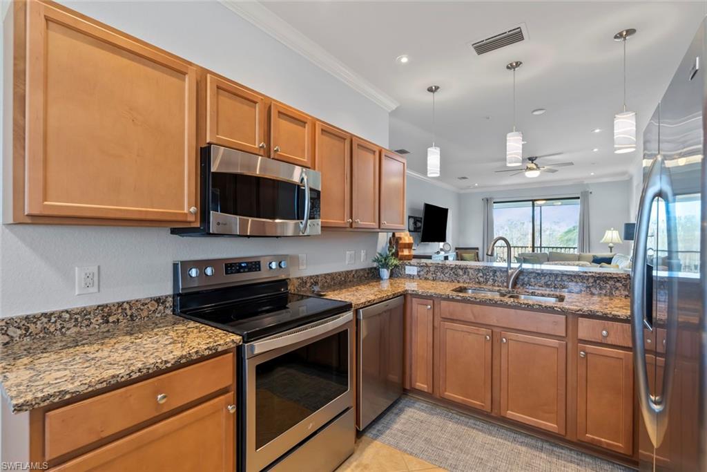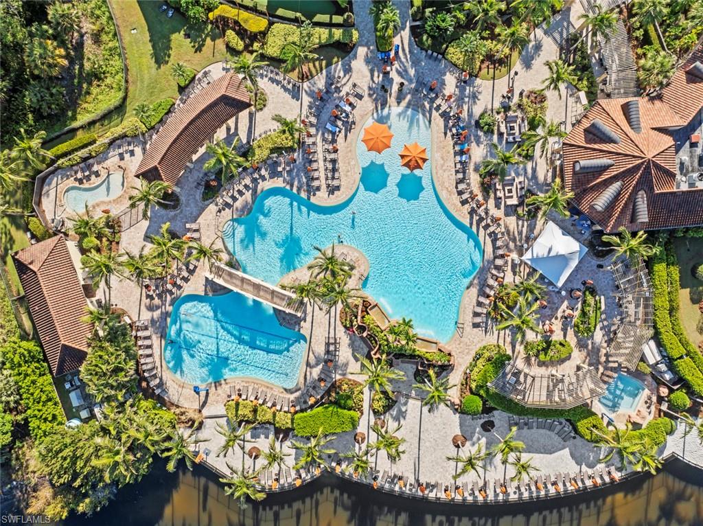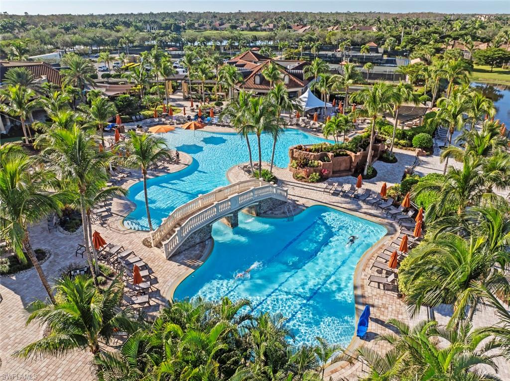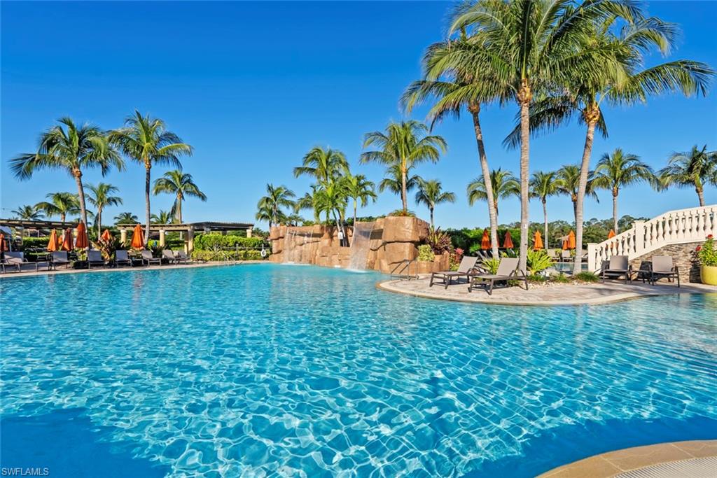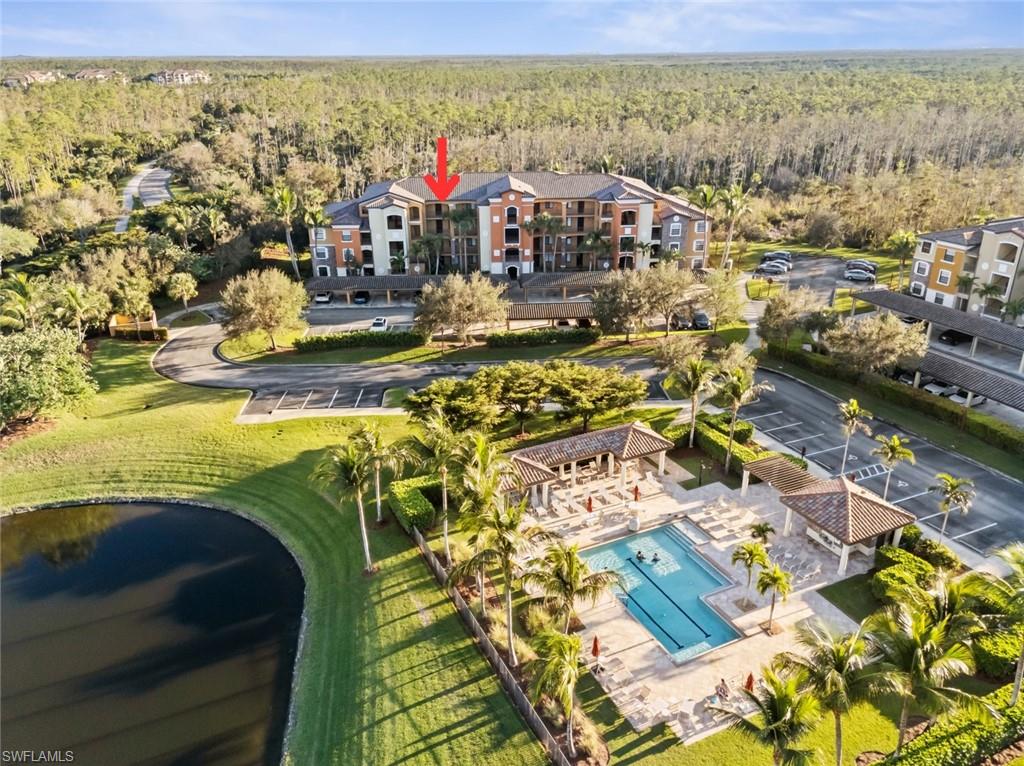 Full Treviso Bay TPC GOLF MEMBERSHIP included in this penthouse floor condo located in the Acqua neighborhood of Treviso Bay, Naples. The community pool with beautiful lake views & BBQ grills is directly across the parking area. The assigned Covered Parking space is the closest to the elevator. This 2-bedroom 2-bath condo has tile throughout. The eat-in kitchen with Stainless steel appliances and granite countertops also has a breakfast bar and additional upgraded built-in cabinets with pull out shelving. Beautifully turn-key furnished! Impact door and sliders. Relax on the lanai with the private and peaceful views of the Rookery nature preserve with gorgeous Royal Palm trees and acres of Cypress trees. The master suite has a king-sized bed, his-and-her walk-in custom closets with an en-suite bath, dual vanities and a walk-in shower. Additional storage closet just outside your door. Treviso Bay's world class amenities offer everything one could want including a Resort Style Pool, Waterfall & Spa, Tiki Bar, Tennis & Pickleball courts, professionally staffed Fitness Center, Bocce & Shuffleboard, Basketball and a full-service Spa with beauty salon. The spectacular TPC Golf clubhouse has 2 dining rooms including fine dining, a library, billiards and a TPC pro shop. The full TPC golf membership entitles you to golf at the many private TPC golf courses in the US. Treviso is just 10 minutes north to downtown Naples 5th Avenue & 3rd Street dining, shopping and beaches! Head south from Treviso and you are just 15 minutes to Marco Island and its many restaurants and beaches!