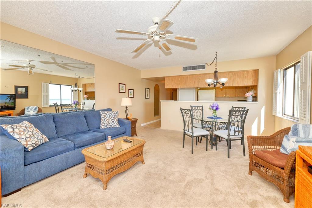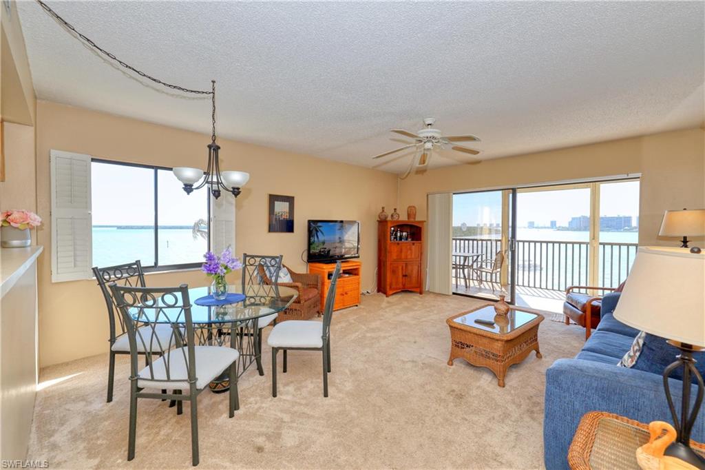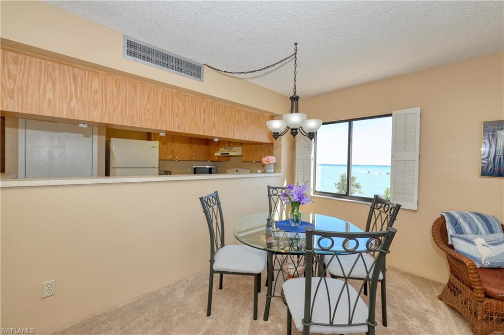 NEW LOW PRICE! WATERFRONT! Won't find a deal like this again at this price ESPECIALLY BEING ON THE BAY with a gorgeous, unobstructed view. One of the few Condos ready to move right in and at this price make renovations to put your personal touch. This is an End Unit with fantastic views of Estero Bay to the North and panning to the SE from the Lanai. There is a lot of entertainment as you watch from your Corner Lanai all the Boating activity, the Manatees and Dolphins as they play. With this End/Corner Lanai you have the perfect seat to watch the gorgeous Sunrises over the Bay. You will enjoy the beautiful resort style pool that also overlooks the Bay so you have some great views as you swim. Short walk to the Gulf to enjoy the beautiful white sandy Fort Myers Beach. Right down the street is Santini Plaza which is in process of building back. Living on the South End is peaceful and if you don't want to drive just catch the Trolley at the end of Lenell to go to Times Square and you have many restaurants to pick from.