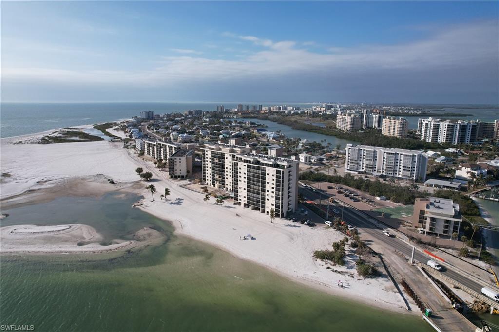 This property offers a perfect blend of stunning PANORAMIC VIEWS and modern amenities. From EVERY WINDOW, you'll be treated to gorgeous vistas of Fort Myers Beach, Lover's Key, and Big San Carlos Pass. The open, END UNIT design allows natural light to flood the space, making it SO BRIGHT and INVITING. The unit has been REMODELED with updated finishes and freshly painted inside and out, giving it a fresh, modern feel. The home is being sold TURNKEY FURNISHED, meaning you can move in and start enjoying the island lifestyle right away. The prime location on the south end of the island ensures easy access off the island, putting you near restaurants, shopping, and entertainment. Relax and take in the Gulf breeze on one of the two lanais. The kitchen is equipped with new, modern appliances, and the property features hurricane impact windows and doors, along with newly added lanai shutters for extra protection. Other upgrades include a newer A/C system and water heater.