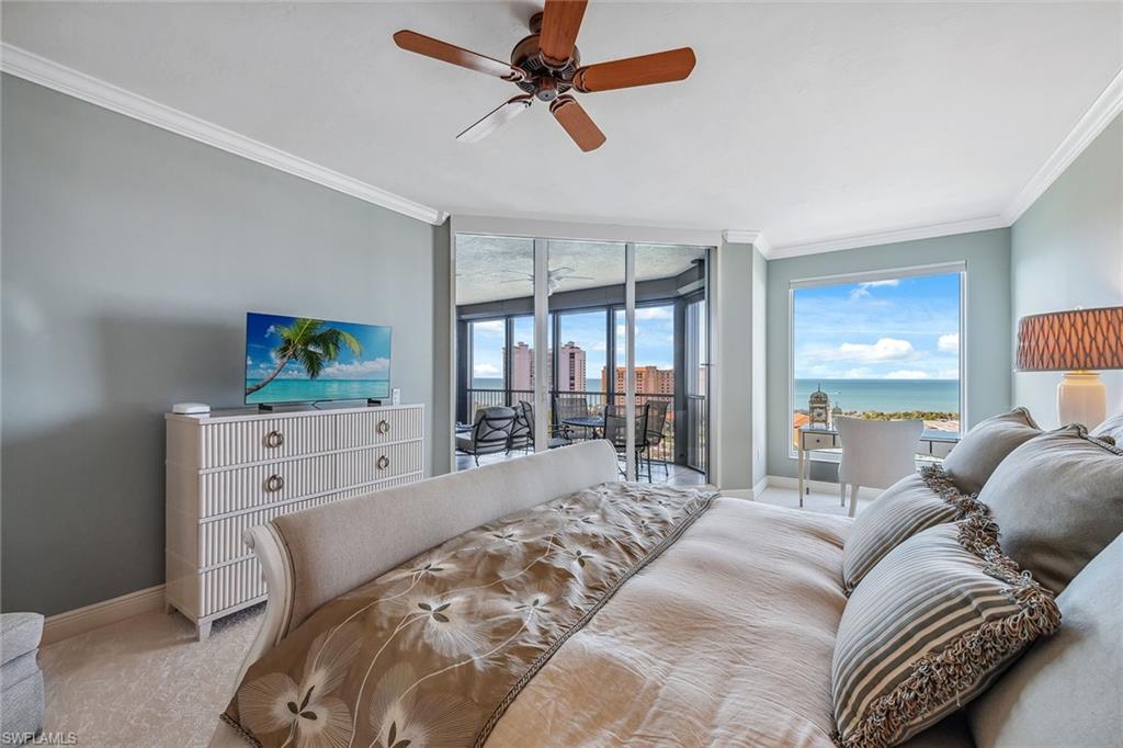 Gorgeous high-floor three-bedroom-plus-den, three-and-a-half-bath Gulf-view designer renovation with custom finishes and upgrades throughout. Your private foyer welcomes you into an expansive living and entertaining space highlighted by designer light fixtures, custom ceiling trim and the finest decor choices. The renovated kitchen design features stainless steel appliances, smooth-close cabinetry and neutral soothing solid surface countertops. The spa-inspired primary bath features an oversized shower, dual vanities and professionally designed lighting and a separate standalone soaking tub. Your friends and family can enjoy maximum privacy in two spacious guest suites with en-suite baths. Trieste has completed refreshing upgrades to common areas and residents enjoy a geo-heated tropical pool, fitness room, social room, library and staffed front desk in the lobby. Experience Bay Colony and Pelican Bay beach clubs with attended beach services or work on your serve at Bay Colony Tennis Club.