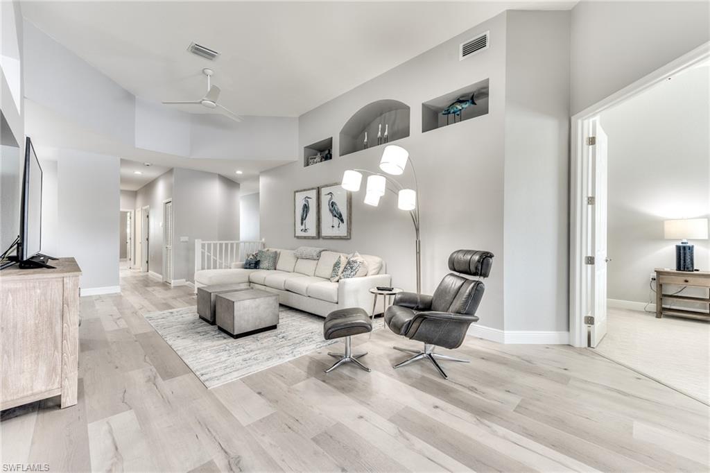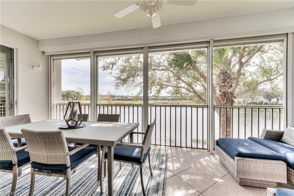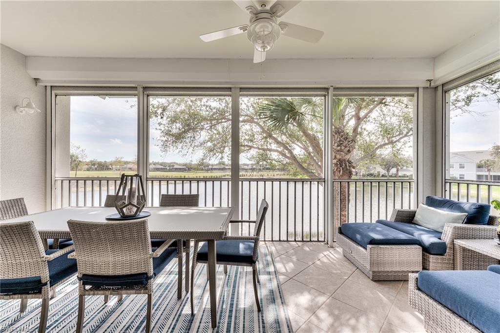 COMPLETELY RENOVATED INSIDE AND OUT! This 2nd floor condo located in Palmetto Ridge section of Shadow Wood at the Brooks has been complete renovated from the floors to the ceiling. The outside not to be outdone boast a stunning lake and golf course view ideally located across from the recently updated community pool. You will not find another opportunity to move into a truly complete home with everything new. HVAC 2024, Water heater 2024, Kitchen appliances 2018, New flat tile roof and new exterior paint. COMPLETE HURRICANE PROTECTION with electric hurricane shutters and lanai and hurricane impact windows. Shadow Wood Country Club offers 54 holes of championship golf,2 clubhouses, 9 Har Tru tennis courts. Members have approved a $22.5 million dollar Lifestyle center which will include; Resort style pool, Poolside restaurant and bar, 6 indoor Pickleball courts and a Grab and go cafe. Construction to start in 2025. The Commons Club has a state of the art Fitness center, additional restaurant and access to our own beach club. Memberships available.