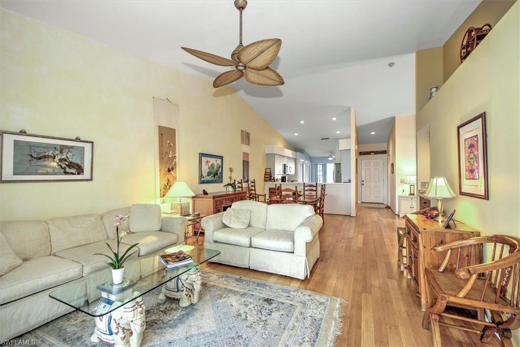 Wonderful 2 bedroom, 2 bath condo with den and garage in the active and social community of Verandas at Tiger Island in Lely Resort. Location is ideal with southwest exposure overlooking the 13th hole of the Flamingo Fairways Golf Course from the back lanai, and northeast exposure from the front lanai. Yes, there are two screened lanais and the cross breeze that flows through the home is just delightful! Beautiful bamboo floors throughout the living areas and bedrooms. Open floorplan with cathedral ceilings. Kitchen features a breakfast area which opens to the front lanai. Flex space can be used as a den, office or even an additional space for guests to stay. This unit allso offers peace of mind with new HVAC and Hot Water Heater installed in 2024! The pool, spa, clubhouse, bocce, tennis and basketball court are just a short walk directly in front of the building. Membership to The Players Club at Lely Resort can be obtained, but is not mandatory. Centrally located close to the word class restaurants, shopping and white sugar sand beaches of Naples, plus just a short drive to Marco Island and all it has to offer. Being offered Turn-Key with few exceptions.