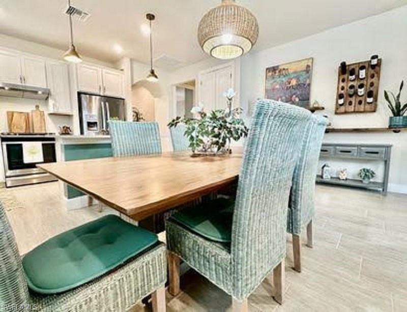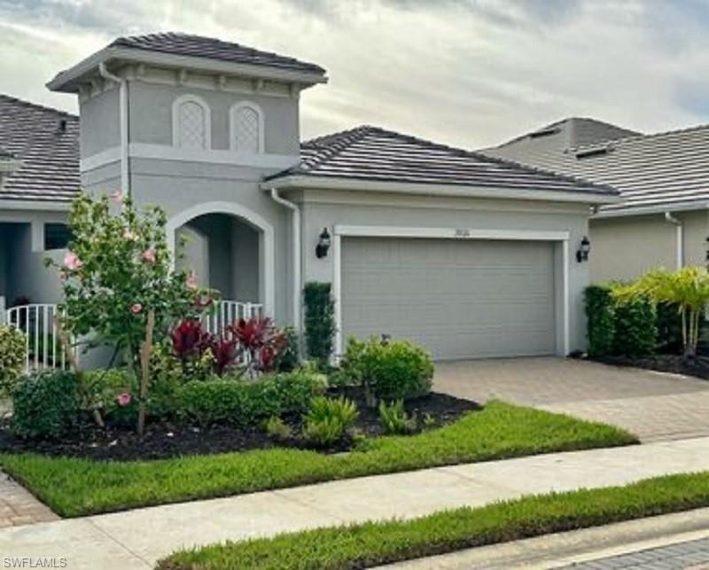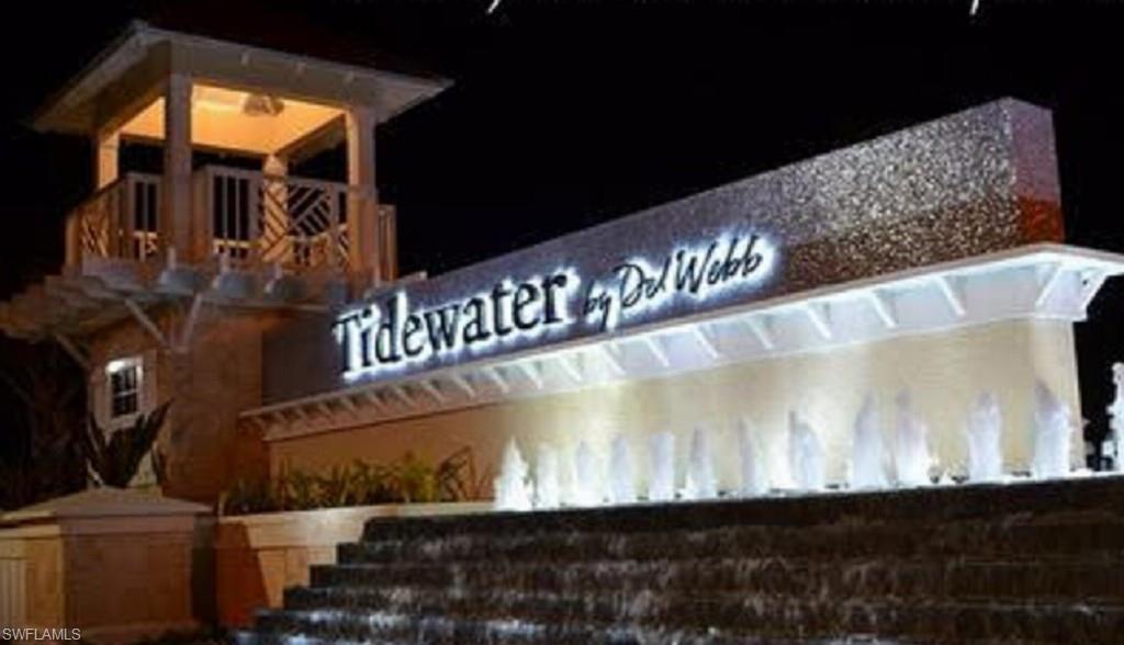 Turnkey. A wonderful opportunity to live the dream in a nearly new (2021) attached villa in Tidewater by Del Webb; the perfectly located 55+ active adult gated community nestled in the village of Estero! This well-appointed, gently lived-in villa is the updated floor plan offered by Pulte and Del Webb. A courtyard entry is a path to the light and airy 1582 square feet, 2-bedroom, 2-bathroom PLUS a double door den/office. The open-concept kitchen, dining, and great room lead to over 500 square feet of sunny south-facing screened lanai with gorgeous water and fountain views. Upgrades throughout the neutral decor include 8ft interior doors - all 12x24 tile (no carpet) - upgraded 42” kitchen cabinets with quartz countertops - upgraded (barely used) appliance package including a gas range, dryer, and water heater - IMPACT windows (no storm shutters needed) - ceiling fans - fully tiled bath and showers (no molded plastic here) - a dedicated laundry room - plantation shutters and so much more! Tidewater’s amenities include a resort-style heated pool and jacuzzi, tennis, pickle ball, bocce ball, community garden, clubs, classes, lending library, well-equipped gym, dog park, big screen TVs, and loads of opportunities to meet friends and participate in a variety of activities led by a full-time activities director. Tidewater is within walking distance of shops, coffee, restaurants, University Village, Miramar Outlets, and Hertz Arena. Just a quick drive to RSW Airport, Coconut Point Mall, Gulf Coast Town Center, beaches, healthcare, and entertainment. Ft Myers, Bonita Springs, Cape Coral, Sanibel, and Naples are just minutes away! This home is ideally located on a North / South lot steps from a beautiful park and the many amenities Tidewater offers. This is a lovely home - clean and pet-free. Available fully furnished and decorated!