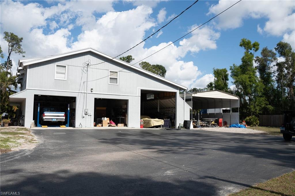 Extraordinary Estate with Unlimited Potential in San Carlos Estates. Set on 1.25 acres of beautifully landscaped grounds, this breathtaking two-story home offers over 4,000 square feet of luxurious living space in the prestigious San Carlos Estates. This home has a beautiful expansive custom kitchen, large rooms, interior recently professionally painted and the roof is BRAND NEW also all the vinyl siding is BRAND NEW, absolutely move in ready. Zoned AG2, this property presents an unparalleled opportunity to combine private estate living with business potential. At the heart of this exceptional property is the standalone garage, which includes a fully independent 2-bedroom, 1-bath apartment complete with a green room, salon, office and salon for part or equipment storage and inventory —perfect for guests, staff, or as a private retreat. The first floor of the garage is a work-from-home dream, featuring a spacious office, a fully functional salon, and a full bath with laundry. The garage itself is a mechanic’s paradise, with three bays—one featuring a car lift—and a third deep bay designed for painting or boat repair tall heavy equipment or RV. Beyond the main structures, the property offers an expansive metal-covered parking area for an RV, boat, or heavy equipment, with an additional concrete pad perfect for large machinery or business use. Whether you’re running a business from home or seeking ample space for personal hobbies, this estate is tailored to accommodate your every need. This is more than just a home—it's a rare and exclusive opportunity to own a secluded, multi-functional estate that offers the perfect blend of luxury, privacy, and entrepreneurial potential in the heart of Bonita Springs centrally located between Fort Myers and Naples a stones throw from US41. This property is truly a dream come true for those who require space, versatility, and a touch of elegance.
