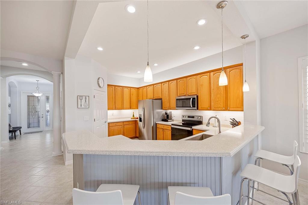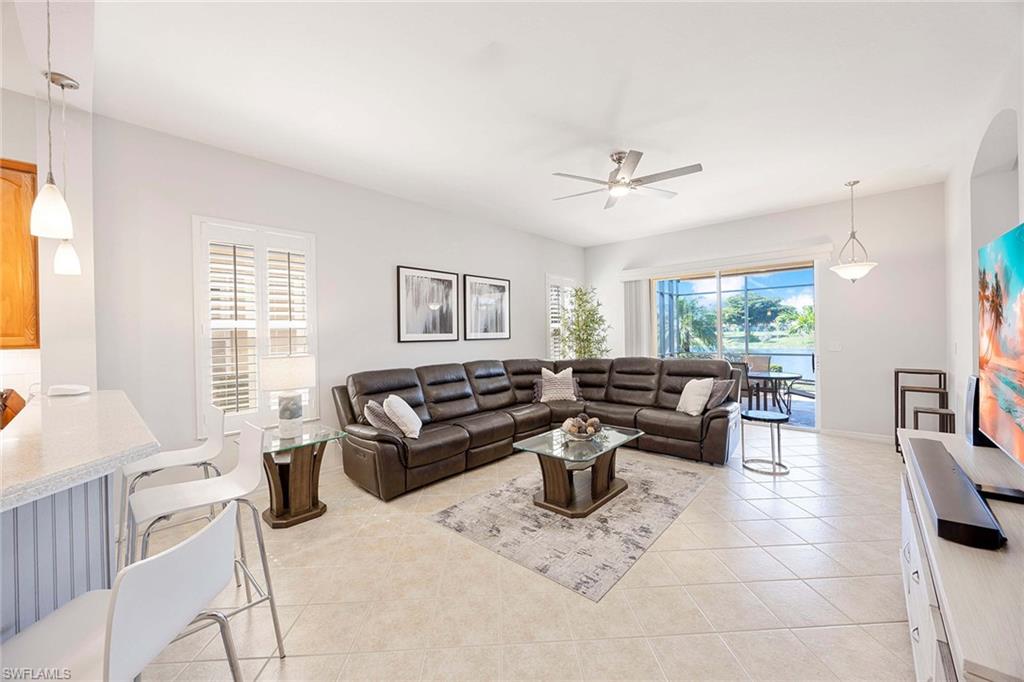 A rare find and easy to show! Sensational lake view with a stunning open floor plan. This Jasmine model is 1,891 square feet with three bedrooms, two baths and features high volume ceilings, new tiled roof in 2019, new air conditioning installed with air conditioner grate vents in 2020, new Whirlpool stainless steel appliances in 2022, new stainless steel kitchen sink in 2021, new tinted windows installed throughout the home in 2021, new frameless shower glass in 2019, plantation shutters in 2022, new garbage disposal in 2023 and updated recess lighting are only a few upgrades in this home. Furniture is negotiable. Bella Terra offers an array of amenities. These include a resort-style swimming pool and hot tub, a 24-hour fitness center, boot camp and yoga sessions, water aerobics, poker, bingo, card games, food truck nights with live music, a secure and shaded play area for children, butterfly garden, sand volleyball, tennis and pickleball courts, basketball, softball and soccer fields, bocce ball and in-line skating rink.
