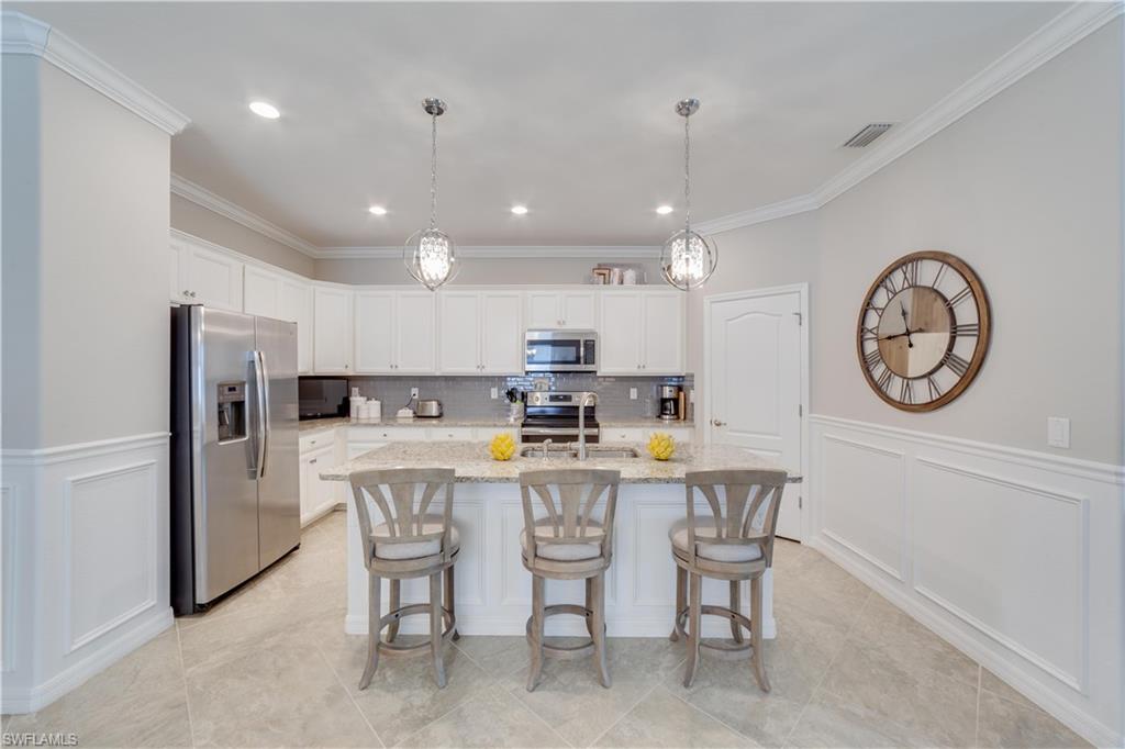 Absolutely stunning home with full lake views. Beautiful sunsets! This home is perfect for pretty much anyone. Great size rooms including the open concept kitchen, dining and living room. This home features tile throughout except the bedrooms. There are some smart home features and a newer framed tv in the living room. There is also custom wainscoting in the entry, dining and the great room. This wonderful floor plan makes this home one of the best around. Enjoy maintenance free living with the HOA taking care of all the landscaping. Relax and enjoy the salt water heated pool overlooking the beautiful lake. This home has many many upgrades and it shows from the time you enter the front door. What a beautiful well cared for home! The community features a 40 acre lake stocked with fish, a fishing pier, tennis court, a childrens playground, a fire pit, a picnic area and sidewalks throughout. Plenty of space for you and your pet since it is also a "pet friendly" community. Across Bonita Beach Rd is Crew Flint Pen Strand Park that offers 2 miles of trails. This is a wonderful home in a fantastic community featuring low HOA and low maintenance to help contribute to a relaxed lifestyle and Florida living. Come live the Florida Dream!