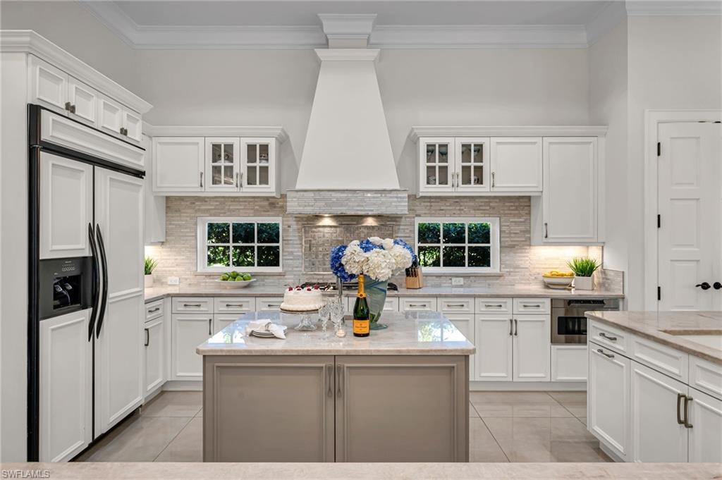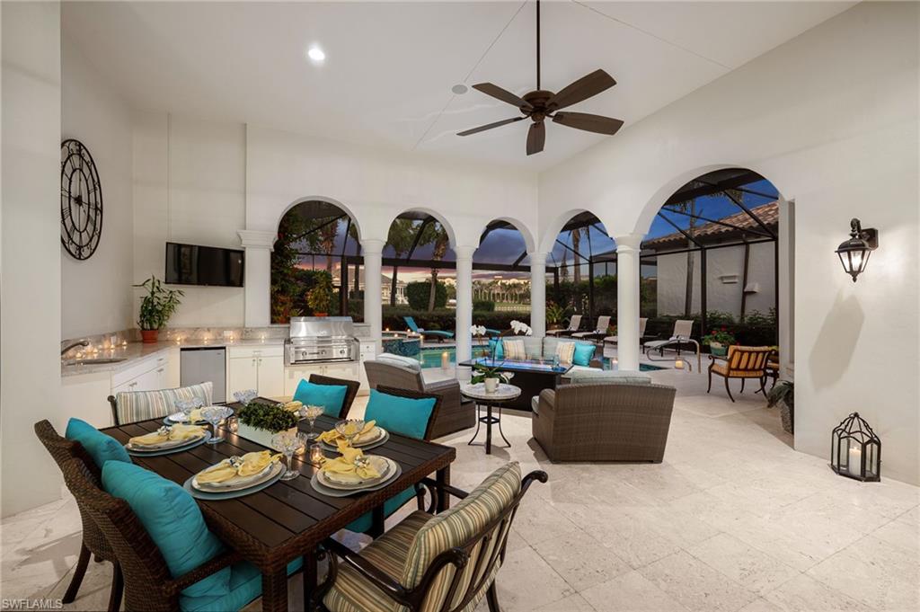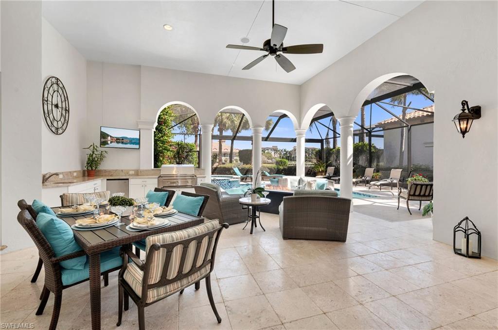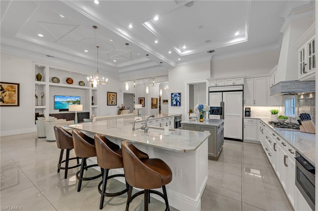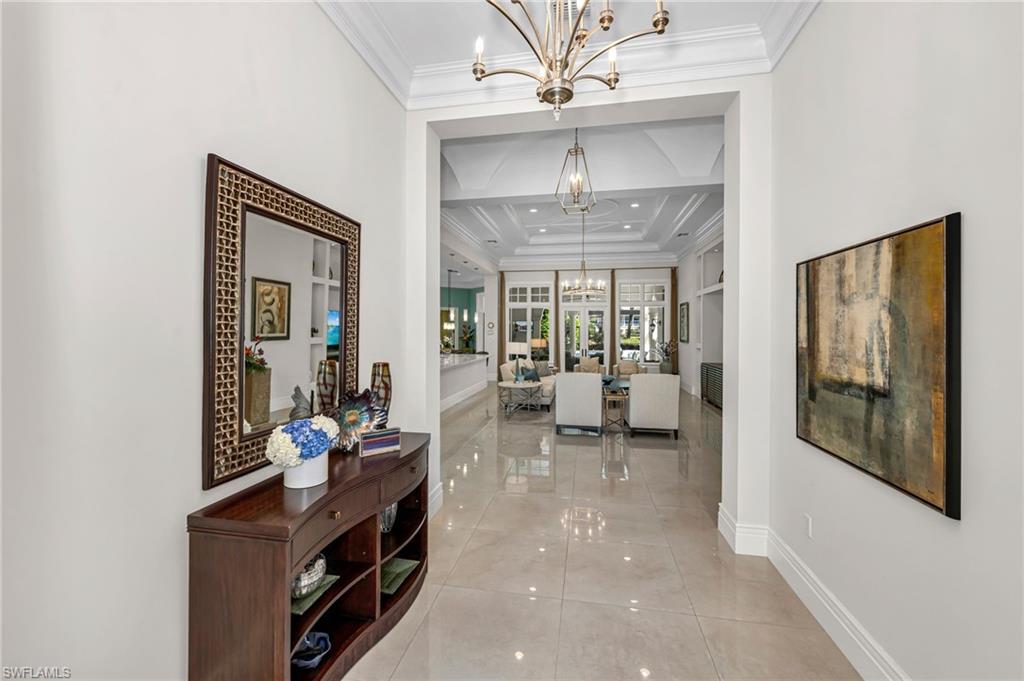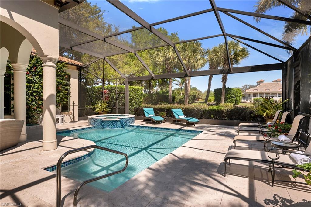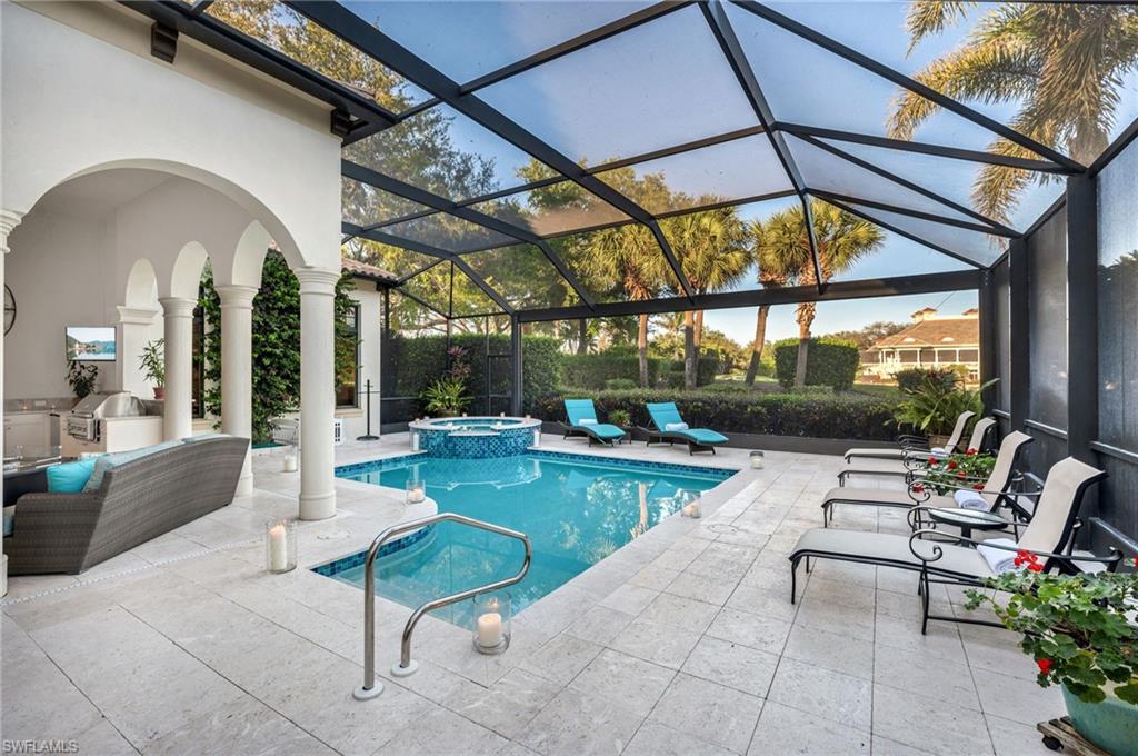 Welcome to this spectacular residence in the Estuary of Grey Oaks, with amazing updates and spectacular views of the 18th green and the Estuary Clubhouse, you truly will feel like you live in paradise. This residence has had a complete transformation of the main living areas as well as the exterior lanai and pool area. From the moment you step inside, you’ll be greeted by expansive 30” x 30” porcelain floors, custom lighting, and a seamless open concept floor plan, achieved by removing columns and walls for a spacious and airy atmosphere. The home boasts a spectacular gourmet kitchen featuring Perla Venata quartzite counters, new lighting, open concept with spectacular view with a custom bar in the morning room, equipped with wine refrigerator, quartzite counters and abundant storage. The kitchen flows effortlessly into the great room, which is complete with unique ceiling details, custom entertainment built-ins, and a state-of-the-art Control 4 audio system throughout the home. This home offers incredible indoor-outdoor living. Step outside to a completely redesigned summer kitchen, marble shell stone deck floors, pool, and spa, where you can enjoy al fresco dining while soaking in the breathtaking views of the golf course and Estuary Clubhouse, through a picture-window screen. The outdoor space truly feels like a private resort villa, perfect for both entertaining and relaxing. Just imagine the fun conversations around the fire table, enjoying your favorite aperitif! The large, luxurious primary suite is a sanctuary in itself, featuring two full baths, two walk-in closets, and an additional morning bar, where you can enjoy your first cup of coffee or tea while getting ready! The oversized study, with custom built-in desks and bespoke cabinetry, serves as a versatile space that can function as an office, den, or yoga/exercise room, but could also be converted into a fourth bedroom with ease, given its proximity to the half bath. This home offers several unique advantages that set it apart, including a whole-house generator, whole-house water filtration system, maintenance-free, transferable warranty, subterranean pest control stations, tankless water heater, and installed gutters and downspouts, buried underground. The attached, epoxy-floor, two-car garage also accommodates an additional golf cart. Grey Oaks has amazing amenities, including a 30,000 sq. ft. Wellness Center and Spa, resort pool, three golf courses, two clubhouses, three restaurants, a new pickleball center, bocce courts, tennis facilities, and a vibrant social scene. Ideally located just minutes from Naples’ pristine beaches, downtown, shopping, and dining, this home offers the perfect balance of luxury, comfort, and convenience. Whether you’re hosting guests or enjoying a quiet evening in, this home is the ultimate expression of luxury living. Welcome to Grey Oaks!