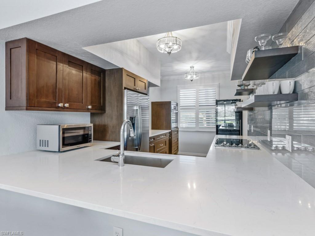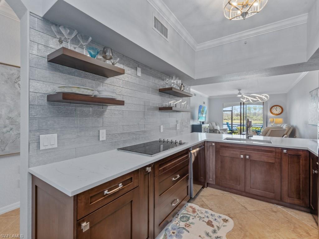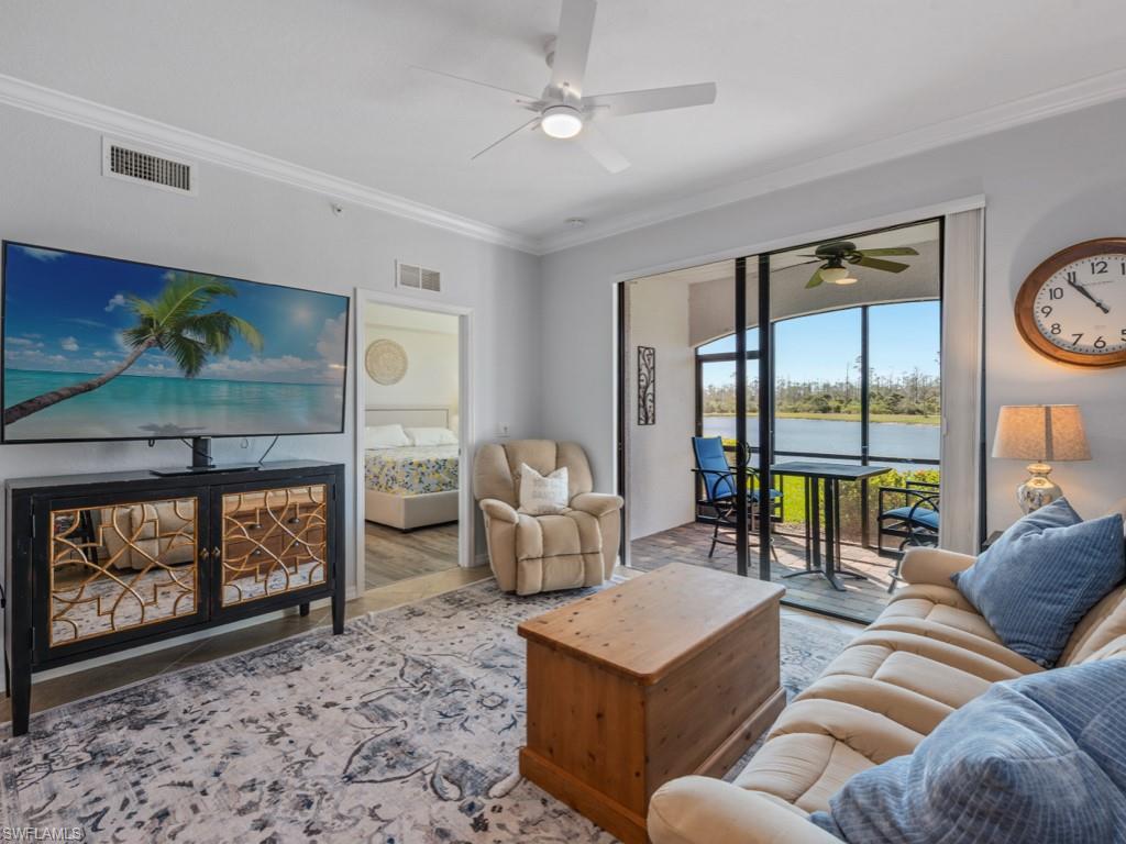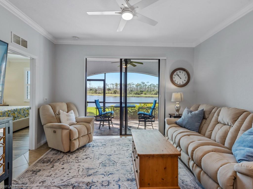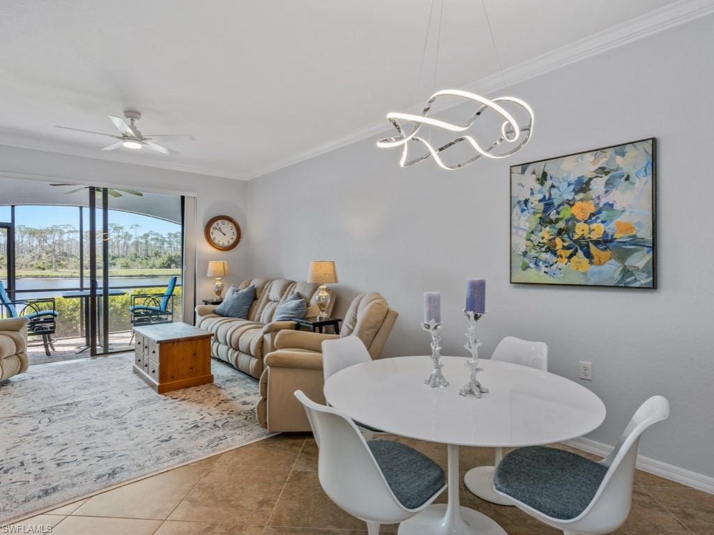 Beautiful lake views grab your attention as soon as you walk into this open concept 2 bed, 2 bath condominium with immediate access to a TPC TREVISO BAY GOLF MEMBERSHIP, one of Naples most desirable golf courses. The kitchen remodel in this unit is stunning with new cabinets, quartz countertops and a tiled feature wall. The extended, gourmet, luxury kitchen boasts a built in Bosch wall oven and a Viking cooktop. Lighting fixtures have been upgraded adding to the bright and inviting feel of this home. The master suite includes a king bed, walk-in closets, en-suite bath and a fabulous view of the lake and The Rookery Bay Preserve. Flooring is tile and luxury vinyl giving a contemporary, modern feel. Treviso Bay's Five Star amenities are second to none boasting the Villa Rilassare amenity center La Bressa resort style pool and bar, professionally staffed fitness center, tennis courts, bocce, pickle ball, basketball and full spa services. The spectacular Treviso Bay TPC Golf clubhouse has two dining rooms, library, TPC pro shop, luxurious locker rooms and a breathtaking terrace over looking hole 9 and 18 to enjoy cocktails or fine dining. Just 5 miles away from Naples beautiful sandy beaches and fabulous 5th Ave shopping and restaurants.