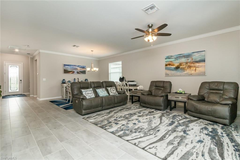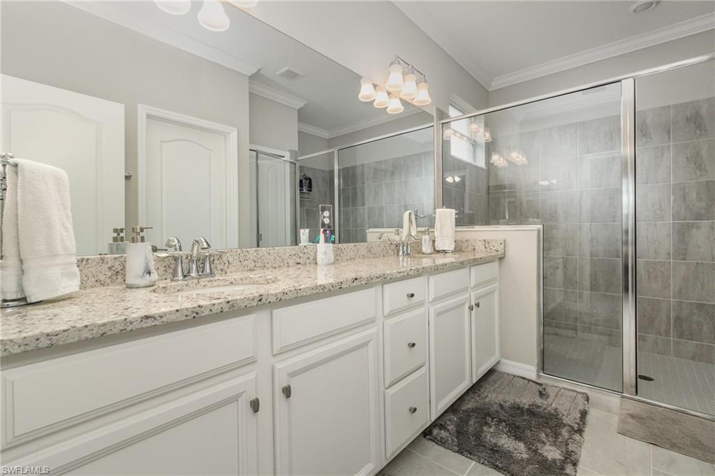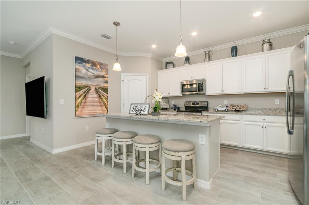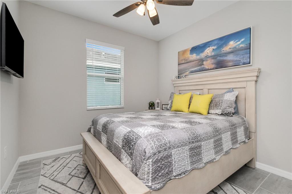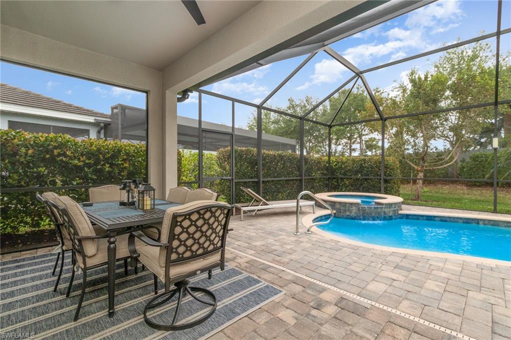 This well appointed three bedroom three full bath home in Bonita Landing is currently the lowest priced home with a pool and spa. It features Southern exposure, a pool and spa, and tile throughout. The home is open and bright with a spacious kitchen, center island, and walk-in pantry. All three bedrooms are separated from each other offering privacy for your family or guests. The great room offers ample space for everyday living and entertaining with a triple panel sliding door that opens to the screened lanai. Step through the sliding doors where your beautiful pool and spa await. Built in grill and prep area make outdoor cooking a pleasure while looking beyond the pool & spa out at a private and lushly landscaped back yard. Bonita Landing is a community of 219 homes surrounding a 40+acre lake offering fishing and nature watching. The community of Bonita Landing comes with amenities such as a children's park, tennis court, and a fishing pier keeping your HOA dues low. Located across the road from the Crew Flint Pen Strand conservation area with miles and miles of trails for biking, hiking, walking etc. A few miles to the West Midtown Bonita is being built bringing future dining and retail to the area making it very convenient for area residents to enjoy. No flood insurance is required in this location. Bonita beach and Barefoot beach are a short 20-25 minute drive from this fantastic community!