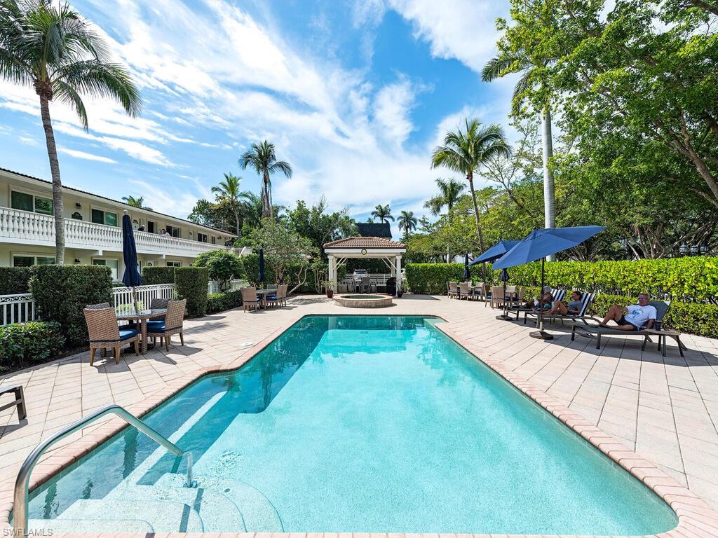 Bright 2nd floor end unit with views of two beautiful courtyards! Impact windows, plantation shutters, and extensive crown molding. Being sold furnished...Castleton Gardens is the quintessential Old Naples lifestyle! Terrific location near 5th Avenue & Cambier Park. Community pool & spa. Pets & monthly rentals allowed. Perfect as a getaway condo or investment property. Move in today!