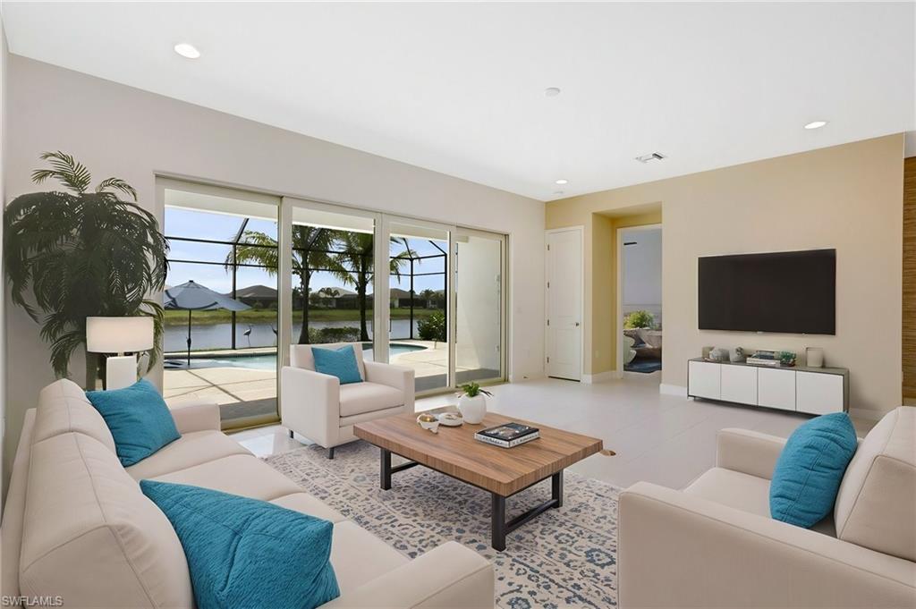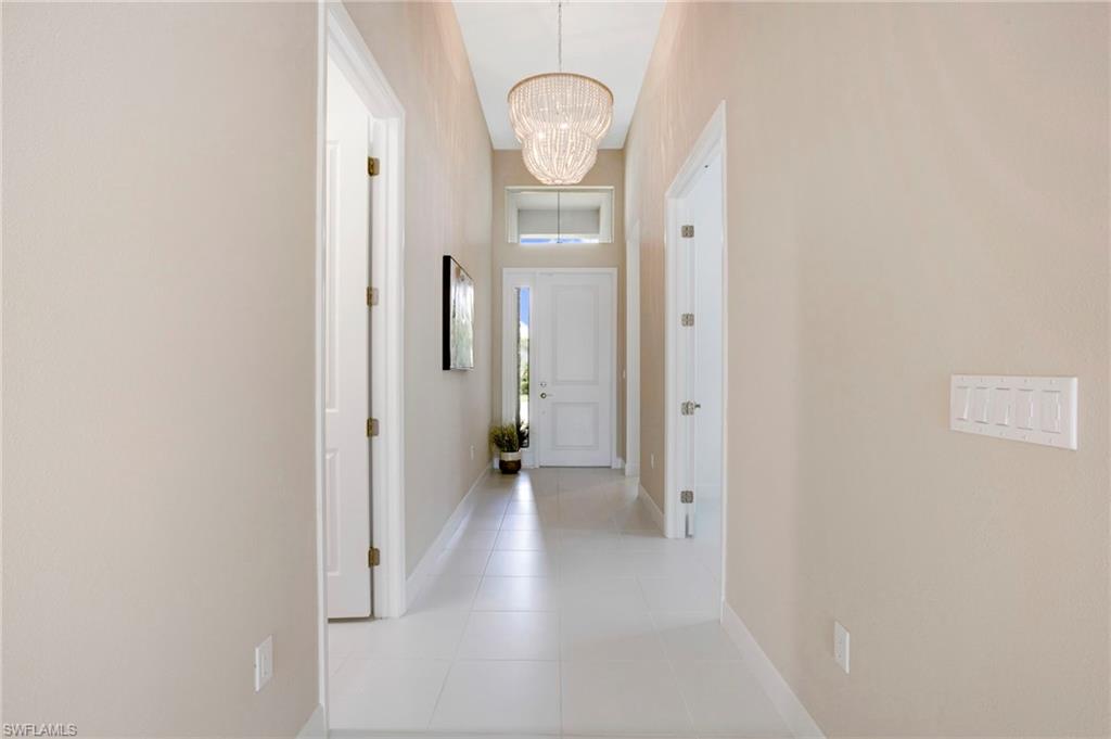 This stunning Flamingo model home offers an unparalleled blend of luxury and comfort in the highly sought-after Valencia Trails, Naples’ premier 55+ community. From the moment you step inside, the soaring 14-foot ceilings create an immediate sense of sophistication. The open-concept design seamlessly connects the kitchen and living areas, making it ideal for both everyday living and elegant entertaining. The chef’s kitchen is a true showpiece, featuring quartz countertops, a gorgeous tile backsplash, a natural gas stove, premium stainless steel appliances, and an upgraded pantry with pullout trash bins. Cabinetry with soft-close functionality and elegant molding adds a touch of refinement, while ample recessed lighting enhances the space. Just outside the glass sliding doors is an outdoor oasis retreat, complete with a covered lanai, private salt water pool with heater, outdoor kitchen, pool cage, and breathtaking views of the pond. Whether you’re enjoying a quiet morning coffee or hosting guests for an evening gathering, this tranquil retreat offers a seamless blend of indoor-outdoor living. Beyond your doorstep, Valencia Trails offers world-class amenities designed to enhance an active and social lifestyle. The impressive 43,000-square-foot clubhouse features a full-service restaurant and bar, a state-of-the-art fitness center, a full-service salon and spa, and multiple recreational spaces, including card rooms, an art studio, and a learning kitchen. For those who love outdoor activities, the community boasts a resort-style pool, a lap pool, a resistance pool, six tennis courts, eight pickleball courts, and scenic walking and biking trails. Even your four-legged companions will feel at home with two dedicated dog parks. This is more than just a home—it’s an opportunity to embrace a luxurious, resort-style lifestyle in one of Naples’ most exclusive communities. Homes like this are rare, and demand for Valencia Trails continues to grow. Don’t miss your chance to own a piece of paradise. Call today to schedule your private tour and experience the elegance, comfort, and breathtaking lake views for yourself."