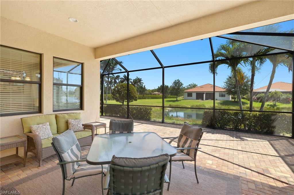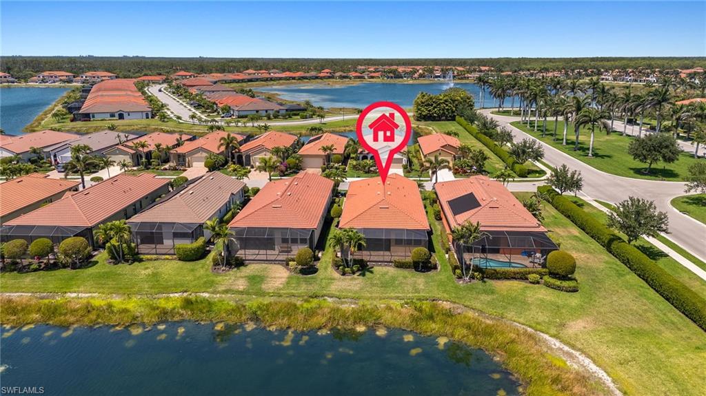 Take a look at what could be your new home in Artesia - A gated community located in South Naples with an enticing selection of amenities! This home is known as the Sand Dollar model. Just grab your suitcase and move right in because this home is being sold turnkey furnished! With this layout, you get 2 spacious bedrooms, a den, 2 bathrooms, almost 2,000 square feet of living space and a 2-car garage. Walking in through your glass front door and through the foyer, you'll notice the living area seamlessly flows into the kitchen and eating area. Kitchen/ dining features include sleek granite countertops, an oversized island, walk-in pantry, ample cabinet space, with upgrades including dimmer switches, a GE double oven range and subway tile backsplash. Only a few steps away, you have your large sliding doors that lead you out to your screened in lanai. The screens were updated to (20/20) no-see-um screens in 2024. With a water view and Eastern exposure, you're definitely going to enjoy an endless amount of sunrises! Like to cook?? The lanai is already plumbed for a summer kitchen! On the opposite side of the home is where you find all of your spacious bedrooms, den and bathrooms. Your guest bathroom has even been updated with a glass shower door. Additional upgrades inside include crown molding throughout, a Wi-Fi thermostat, impact resistant doors and windows, a new washer in 2023, along with having a heat pump rather than your traditional A/C unit! That means that in addition to providing cooling, it can also heat the home efficiently on the rare chilly day. This home is ready for you! The seller has a flood insurance policy in place that IS TRANSFERABLE to a buyer. Their current flood insurance annual premium is $1099. If you wanted to purchase a new flood policy, that annual premium would be significantly higher! Artesia has NO CDD costs, and low HOA fees that include cable, high-speed internet, and lawn maintenance. It also gives you the ability to enjoy the amazing amenities! You have a resort-style pool with beach entry, a fitness center, aerobics room, multiple pickleball and bocce courts, dog parks, an outdoor ping pong table, a billiard room, card room, a theater, library, and a cafe. There's also a wide variety of classes, events and entertainment that take place! Artesia offers something for everyone. That includes you, your friends and your family. Being in this location means it's quiet yet very close to everything you need. It's within 5 minutes of Publix, Walmart, Aldi's, many clothing stores and restaurants. It's only about 20 minutes to the beach/downtown. Come check out what this community and lifestyle is all about!