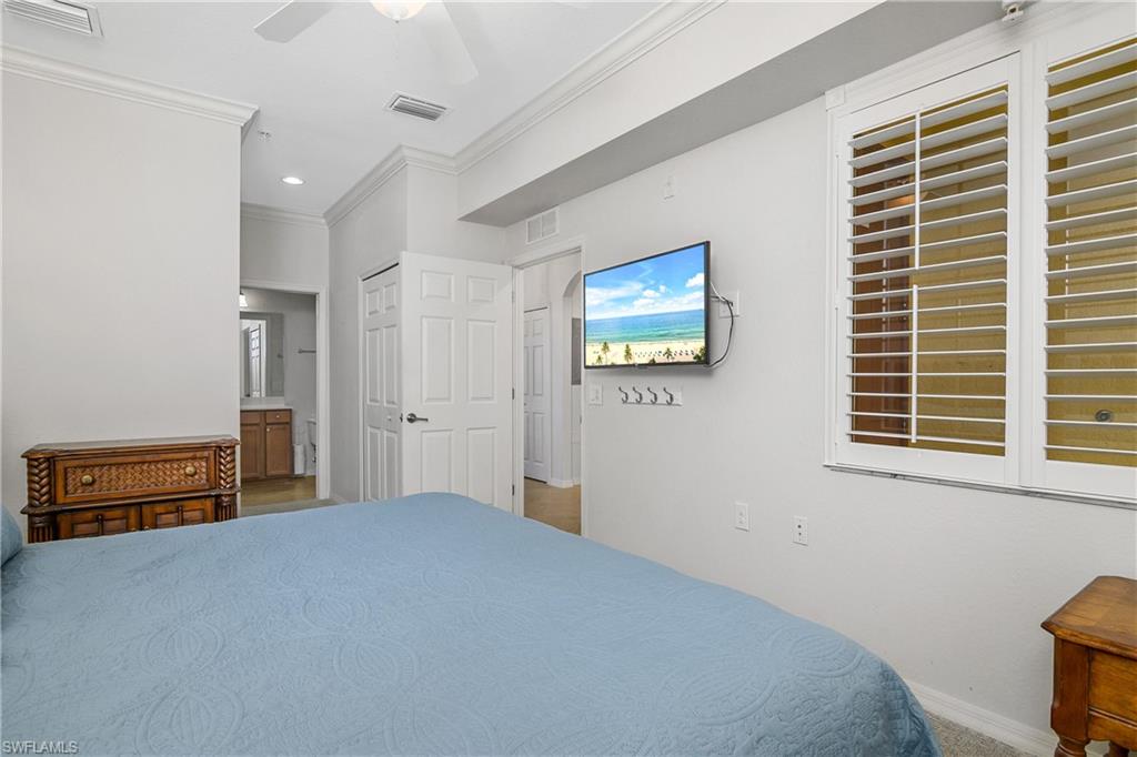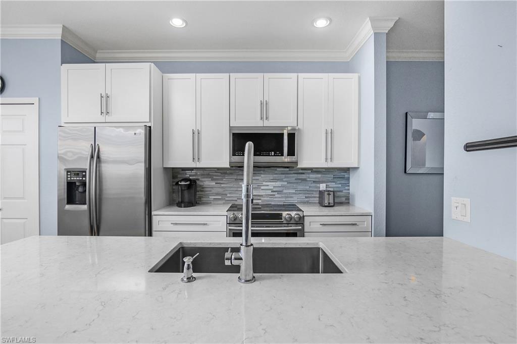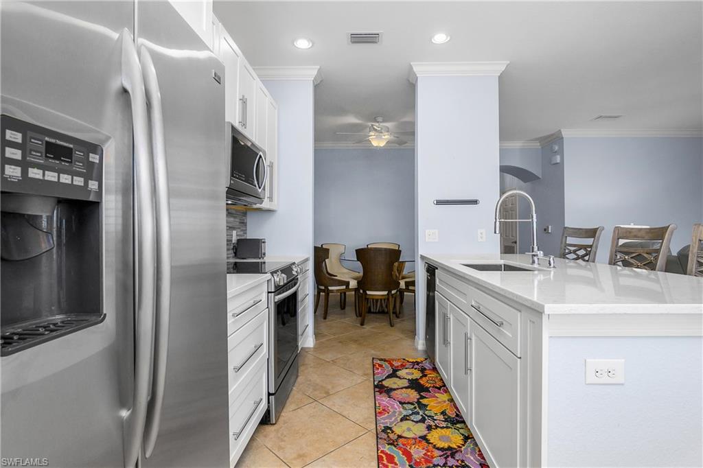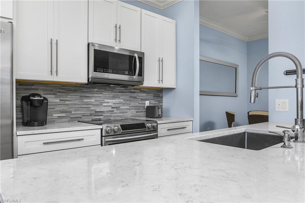 PRICED TO MOVE! This beautifully updated 2 bedroom, 2 bathroom condo with IMMEDIATE GOLF MEMBERSHIP in Treviso Bay offers the perfect blend of style, comfort, and resort-style living. Located on the 4th floor and positioned as a top floor corner unit, it provides added privacy and sweeping views of the serene lake and lush preserve. Inside, the updated kitchen features white cabinetry, white countertops, a tile backsplash, and upgraded hallway lighting, all creating a bright and modern aesthetic. The primary bedroom includes a custom California closet, and the condo also boasts the largest storage room available in the community, complete with built-in shelving for optimal organization. Enjoy the outdoors year-round from the tiled lanai, enjoying breathtaking views of the lake and Rookery Bay Preserve or welcome the breeze through the manual front door screen. Treviso Bay residents enjoy an unmatched lifestyle with access to a private TPC golf course, resort-style pool with poolside restaurant and bar, state-of-the-art fitness center, full-service spa, tennis, pickleball, and bocce courts, and a vibrant social calendar. The main clubhouse offers a golf pro-shop indoor/outdoor dining and bars, activity room, events room, private dining room, library and business center. The community is conveniently located just minutes from downtown Naples, world-class dining, shopping, and the Gulf beaches. This is your chance to experience the ultimate in Naples living in a home that truly has it all.