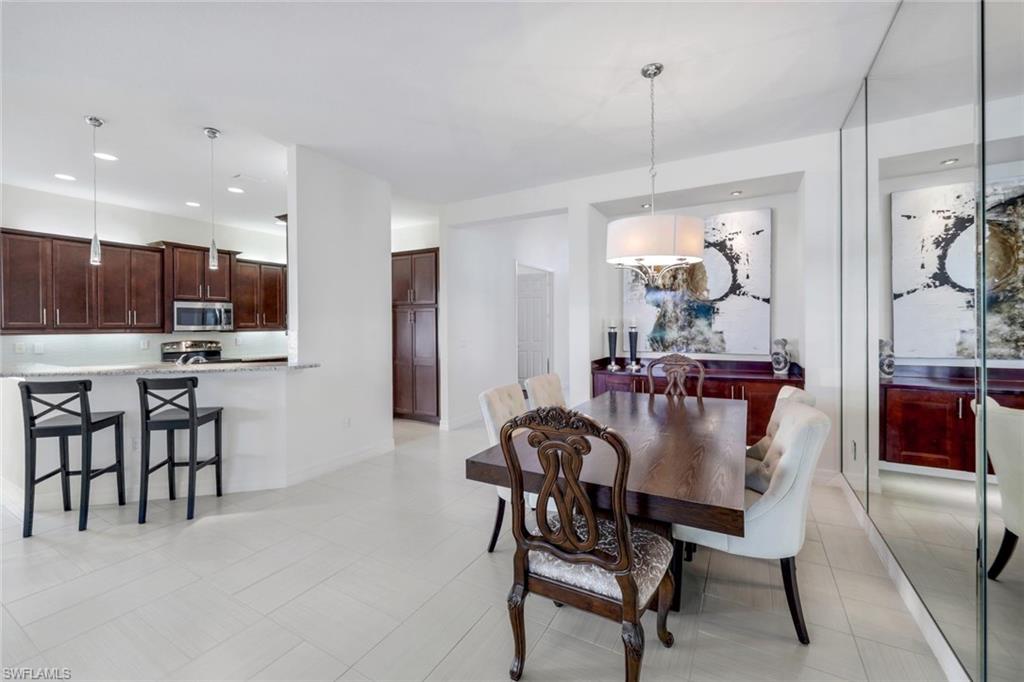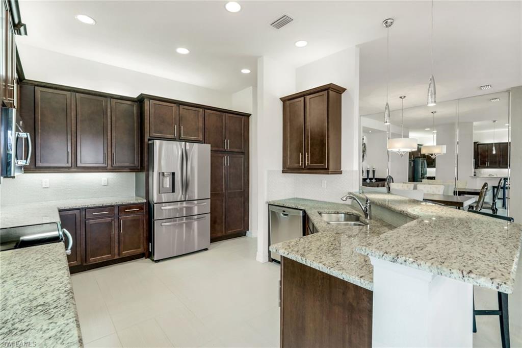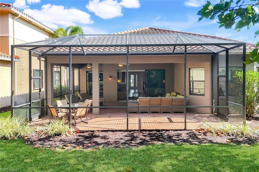 Move right into this beautifully furnished Naples home—perfect as a winter retreat or an easy-to-maintain full-time residence where everyday living feels like a vacation. The expansive great room flows seamlessly into a formal dining area, complete with a built-in buffet and custom mirrored wall; an ideal setup for entertaining. The kitchen features rich wood cabinetry, sleek stainless-steel appliances (including a newer dishwasher and refrigerator), granite countertops, tile backsplash, ambient lighting, and a casual dining area that’s perfect for both daily use and hosting. The primary suite offers a tranquil escape with a sitting area, two finished walk-in closets, and an en suite bath. A versatile den with custom built-ins provides a perfect home office or optional guest space. All bathrooms are elegantly appointed with marble countertops, wood cabinetry, full-height vanity mirrors, and sconce lighting. The well-designed split-bedroom layout provides enhanced privacy for guests or family members, while a hallway door in one guest area transforms it into a private suite. Additional highlights include custom trim work, low-maintenance tile flooring, plantation shutters, ceiling fans, a finished garage floor, and a well-equipped laundry room with cabinetry and a utility sink. A newer HVAC system keeps things cool and will provide years of year-round comfort. The covered “L”-shaped lanai was expanded by over 3 feet, allowing you to fully embrace the Florida outdoor lifestyle. The extended screened area significantly enhances your outdoor living space, offering ample room for both seating and dining—perfect for relaxing in total tranquility. Or consider adding a pool in the future and create your very own tropical oasis. Located in North Naples, Riverstone offers a vibrant, resort-style lifestyle with amenities for all ages. Residents enjoy a fitness center, social hall, resort-style and lap pools, spa, five lighted tennis courts, indoor and outdoor basketball/pickleball courts, a tot lot, splash pad, game room, and an on-site activities coordinator. Zoned for top-rated “A” schools and just minutes from I-75, this is your opportunity to embrace the Southwest Florida lifestyle you’ve always dreamed of. Don’t miss your chance to claim your piece of paradise in one of North Naples' most sought-after communities.