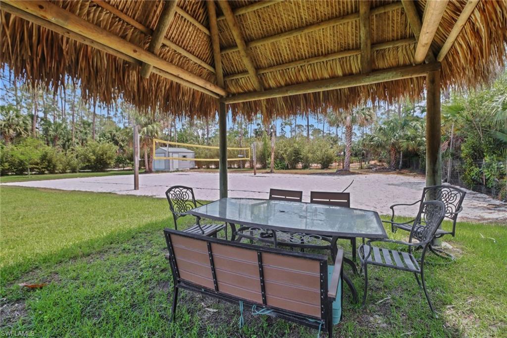 A rare opportunity to own a private resort-style estate featuring a custom-built (4/2) main home and independent luxury (2/1) guest house, all set on 2.34 meticulously landscaped acres (100% uplands) in the prestigious Logan Woods neighborhood. With prime frontage on Logan Blvd and a grand approach set back 200 feet from the street, this home offers not only privacy, but the chance to showcase your success with style. The main residence, built in 2020, features 12’ ceilings, designer lighting, and custom architectural details throughout its 2,213sf. The expansive natural light-filled open-concept living area flows seamlessly into a chef’s kitchen with stainless steel appliances, induction cooktop, built-in wine fridge, and a walk-in pantry — crafted for effortless entertaining. Retreat to the grand primary suite with dual walk-in closets, double vanities, soaking tub, and an extraordinary 14’ double shower. Three guest bedrooms, a formal dining room, and a thoughtfully designed laundry room add function and sophistication throughout. Step outside to your own private resort: a sparkling 30' x 15' heated saltwater pool with sun shelf and wrap-around bench, surrounded by an 881sf paver sun deck, nearly 300sf of covered lanai with retractable no-see-um screens, and a fully equipped outdoor kitchen with a premium Le Griddle flat-top grill, under-counter fridge, and ample storage — all surrounded by lush bamboo for privacy and swaying coconut palms for total relaxation. A tiki hut and full sand volleyball court complete the ultimate backyard oasis. The soon to be finished guest house is a jewel of its own, adding approx. 875sf of luxury living space with two bedrooms, one bath, a full kitchen, living area, laundry, and charming 175sf front porch. Thoughtfully designed for complete privacy, it’s ideal for extended family, discerning guests, or rental opportunities. Every detail of this extraordinary estate reflects a lifestyle of prestige, comfort, and effortless indoor-outdoor living. Welcome to your personal paradise.