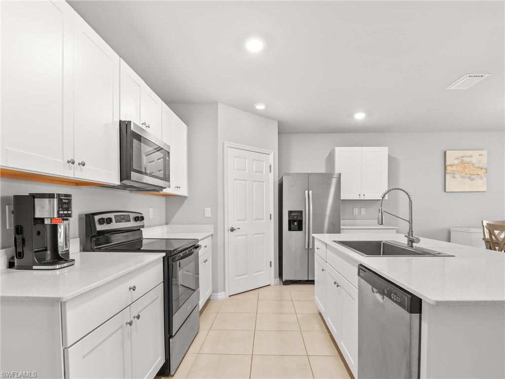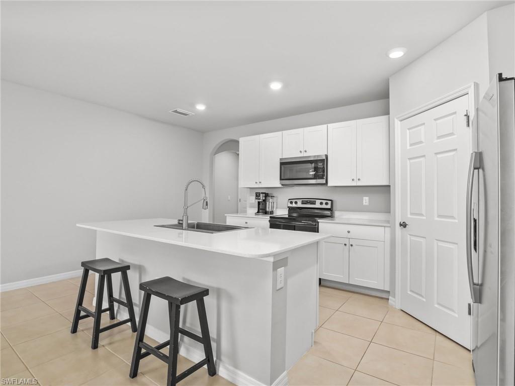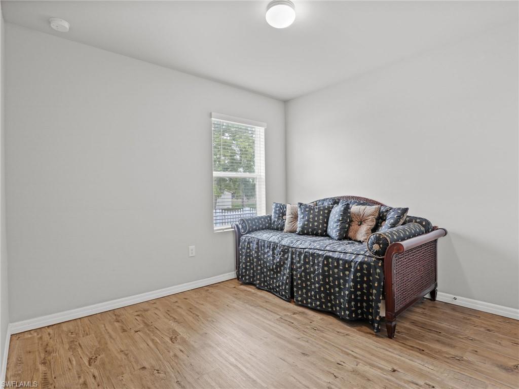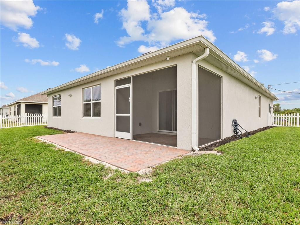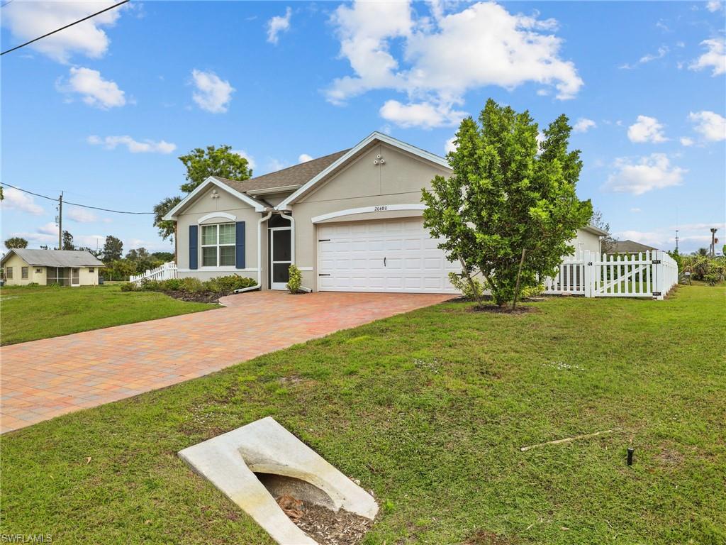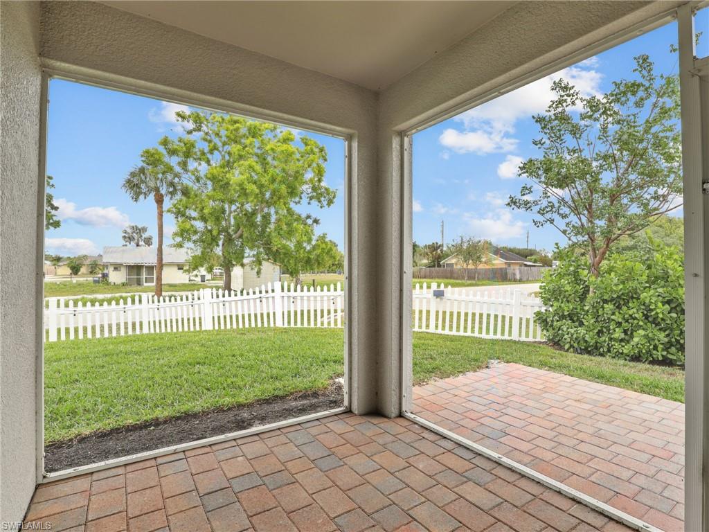 Almost NEW – built in 2023!!! This popular DR HORTON built home is located on a OVERSIZED CORNER lot. Living area of 1,800+ square fee that includes 4 bedrooms and 2 full bathrooms. The home also has an attached 2 car GARAGE. NO HOA FEE!!! The home has an OPEN concept and already comes with customized features to save you time and money: QUARTZ countertops, vinyl flooring in all bedrooms, tile in the main area and bathrooms (no carpet), screened front & back lanai, white picket vinyl fence around property rain gutters, extended front walkway & extended lanai, upgraded master bedroom closet, smart home security system, pre wired for EV charging and new Floratam St Augustine backyard grass. The home is IDEALLY located in Bonita Springs: minutes away from the upcoming shopping/dining at Midtown Bonita, close to the beach. Coconut Point shopping center and the Airport. ***** THERE IS A VIRTUAL TOUR LINK YOU CAN CLICK ON FOR MORE INFORMATION. *****