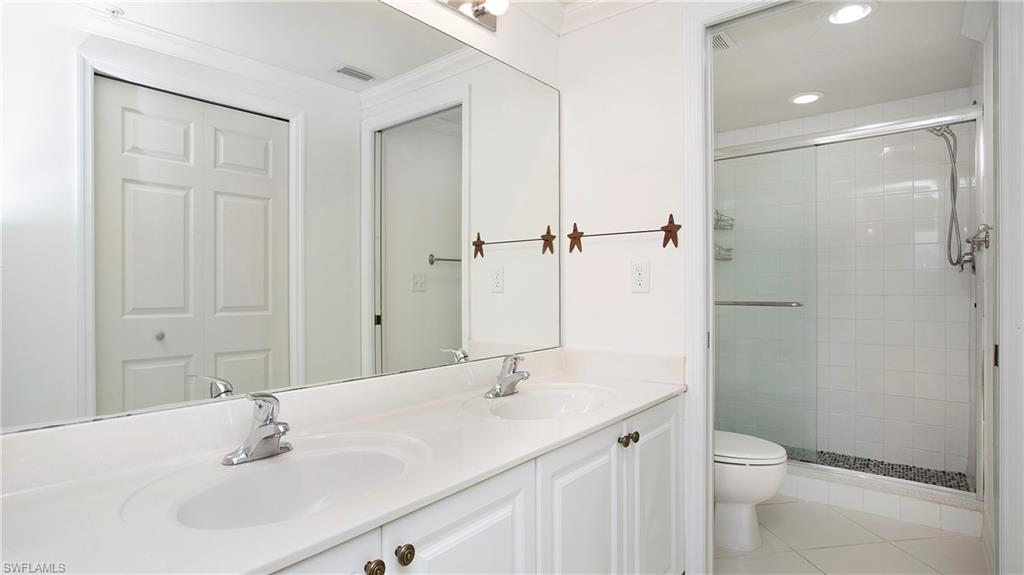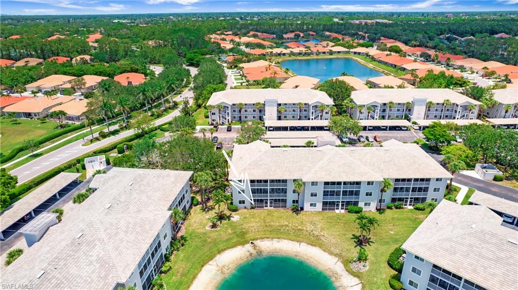 The wait is over-Naples BEST VALUE! First floor CORNER 3-bedroom, 2-bathroom unit with SOUTHERN EXPOSURE now available in the GATED COMMUNITY of BLUE HERON with some of Naples' LOWEST CONDO FEES. At almost 1450 sq' this is the LARGEST floor plan in the complex. Built with IMPACT WINDOWS AND SLIDERS in 2004-the unit has been WELL-MAINTAINED by the ORIGINAL OWNER. Light and bright with TRIPLE CROWN MOLDING plus WHITE cabinets thru-out, granite counters and back-splash in kitchen, neutral tile in main living spaces and bathrooms, wood flooring and HUGE WALK-IN in main bedroom and carpet in the 2 smaller bedrooms. The beautiful WATER FOUNTAIN and LONG LAKE VIEW add ambiance not found in other locations. Community roofs replaced in 2022-2023 add value to the property. Covered parking and ample additional parking (2 car limit per unit). With close proximity to the beautiful pool and clubhouse, your Florida lifestyle awaits! Daily shopping conveniently located with Aldi's, Publix and Walmart just a couple of minutes away. It's a quick drive to downtown Naples-fine dining, shopping, galleries & beaches. Get ready for YOUR PARADISE!