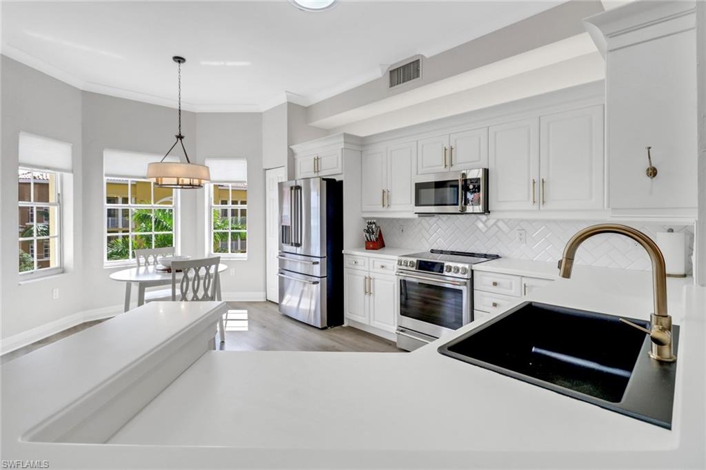 Step into luxury with this exquisite penthouse condo in the heart of downtown Naples! This TURNKEY residence offers an unparalleled blend of comfort and convenience. Recently redesigned with meticulous attention to detail, featuring new flooring, sleek modern finishes throughout, a state-of-the-art HVAC system for year-round comfort, and a smart home entrance for seamless living. Indulge in the spa-like experience within the master bathroom, while both bathrooms showcase elegant quartz countertops, adding a touch of sophistication. The beautifully appointed kitchen is equipped with high-end Cafe appliances and stylish, contemporary cabinetry. Retreat to the bedrooms, where premium bedding ensures restful nights. Beyond the stunning interiors, Bayfront offers exceptional amenities designed for a contemporary lifestyle. Take a refreshing dip in one of the two sparkling pools, engage in a friendly match on the pickleball courts, stay active in the fitness studio, or socialize with neighbors on the inviting social deck complete with grills. All this and just minutes from your doorstep to the pristine sands of world-class beaches, indulging in the culinary delights of 5-star restaurants, or exploring the chic boutiques and galleries that make Naples so desirable. This is more than just a condominium; it's a rare opportunity to embrace the coveted Naples lifestyle to its fullest.