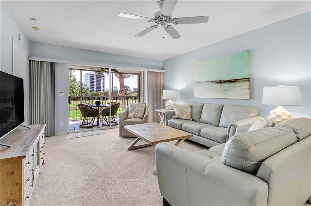 Nestled off of Wiggins Pass Road you will find the highly sought after community of Princeton Place with luscious landscaping, walkways and quiet sitting areas. Offering a perfect blend of comfort and convenience, this light-filled turnkey condo features a spacious open floor plan with serene views and tasteful finishes throughout. The kitchen boasts ample cabinetry with an eat in kitchen & plenty of natural light flowing through. Seamlessly connecting to the dining and living areas—ideal for entertaining or relaxing. The primary suite offers a peaceful retreat with a walk-in closet and a private en-suite bathroom, while the guest bedroom and second full bath provide comfort and privacy for visitors. Enjoy the tranquil Florida sunrise from your lanai overlooking the pond with captivating bay views. The building has been recently painted, new roofs, newly renovated elevators, new pipes throughout the unit and all assessments paid by owner. Community pool with a grilling area and bathhouse in close proximity and easy access to a parking spot right in front under the carport. Optional membership to the Tarpon Cove Yacht & Racquet Club, a private club offering amenities such as tennis, a fitness facility, dining and many social events. It also has a daily boat shuttle to the beach. Boat docks have been replaced and can be purchased or rented if available. Also across the street from the new Kinsale Golf Club, a newly designed world-class golf course. Located just minutes from Barefoot Beach, Mercato, and Downtown Naples, this condo offers the best of Southwest Florida living—whether you're seeking a year-round home, vacation getaway, or investment property. Don't miss this rare opportunity—schedule your private showing today!