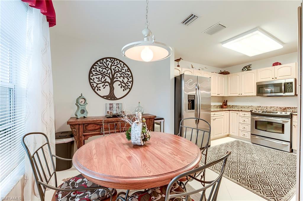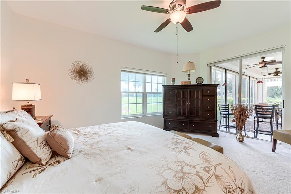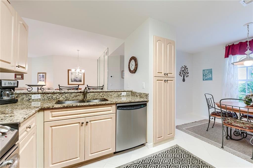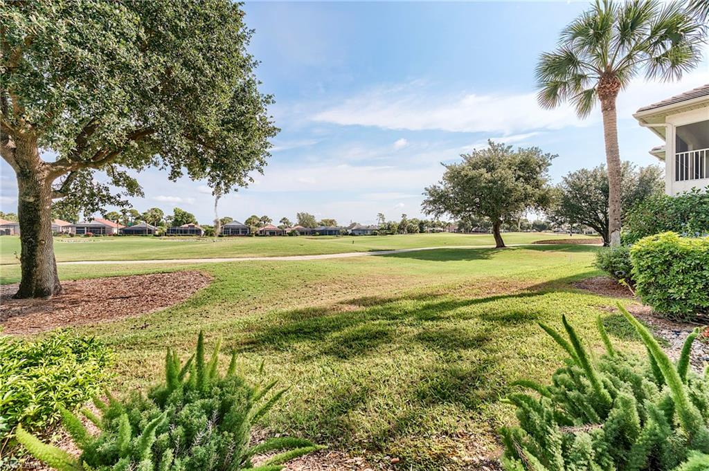 A Vines BEST BUY: first-floor condo selling turnkey with a golf course view and a 2-car detached garage. The great room is open to both the kitchen and the large L-shaped lanai. The kitchen has a bar counter, dining area, and stainless appliances. Split bedrooms afford privacy for visiting family or guests. There is abundant closet space in both bedrooms. You’ll love the convenience of the neighborhood pool. The HVAC system was new in 2020. Come check out this well-priced condo and begin to enjoy the vibrant lifestyle of SWFL and the Estero Country Club. Estero CC features a recently renovated clubhouse with indoor and outdoor dining venues, pickleball, tennis, a 24/7 fitness room, social events, and an 18-hole Gordon Lewis golf course just voted the Best Golf Course in Lee County. Golf memberships, including executive memberships for under 56, are available with no waitlist.