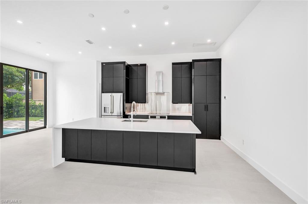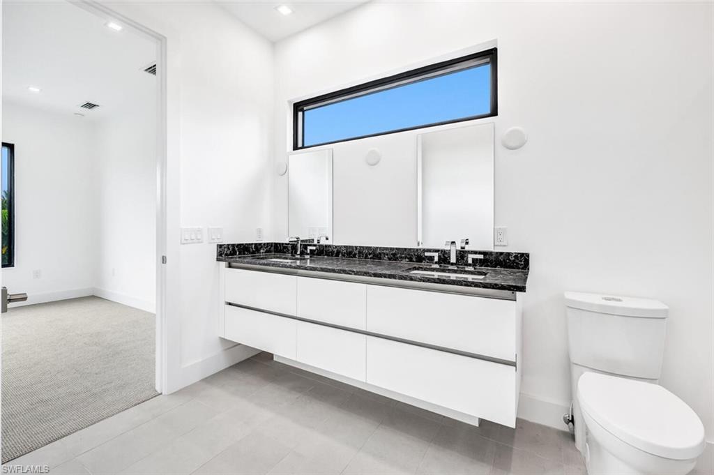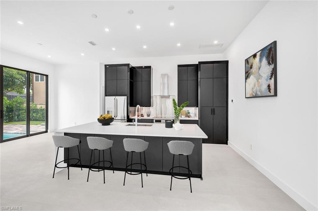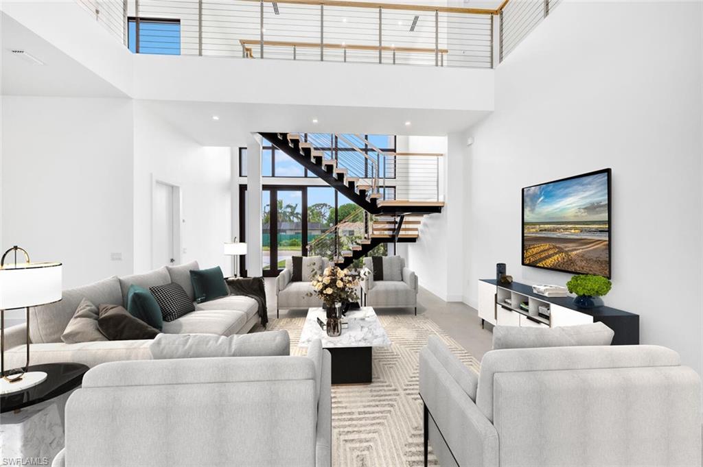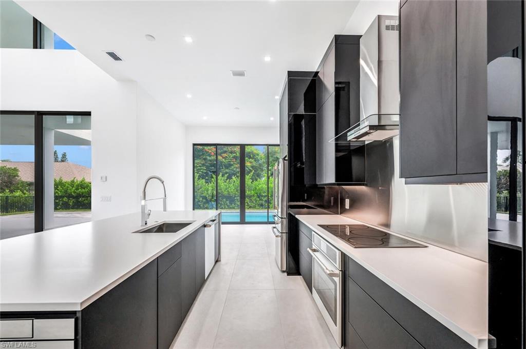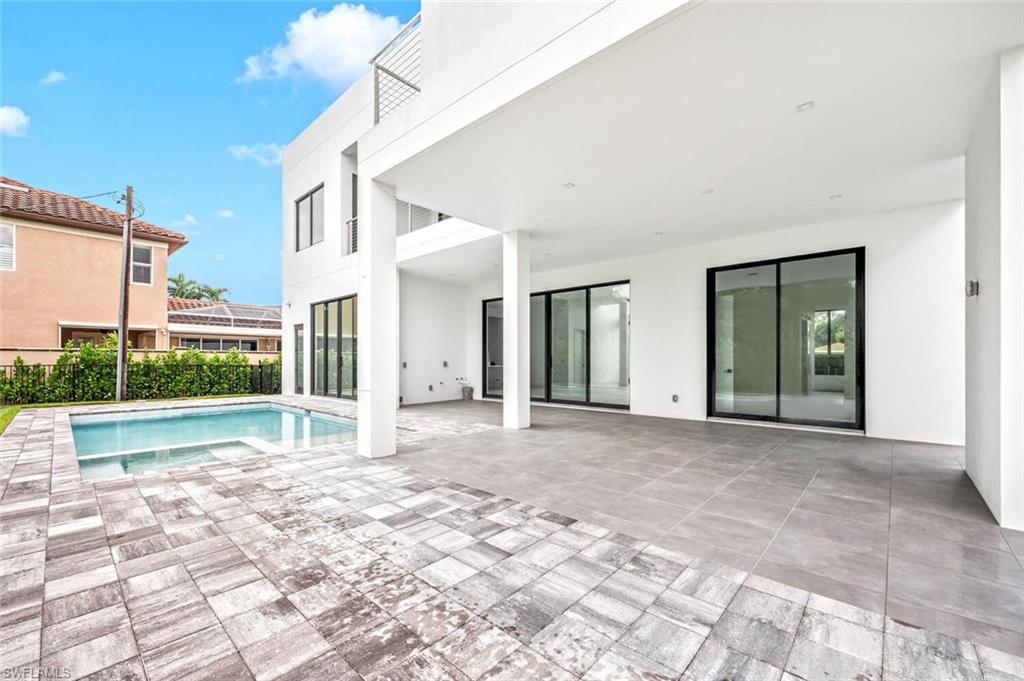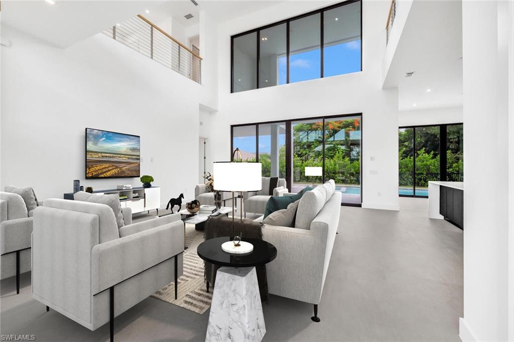 Embrace the essence of contemporary luxury living in this extraordinary residence, where every detail exudes sophistication and style. Newly completed, this 2-story architectural masterpiece features 4 bedrooms, 5 bathrooms (3 full & 2 half baths). Discover the perfect blend of clean lines and timeless styling, complemented by 20-foot walls of impact glass that invite the outdoors in and creating an abundance of natural light. The chef's kitchen, equipped with a 200 square foot walk-in pantry, island, custom cabinetry complimented by solid surface counters, and top-of-the-line stainless appliances, sets the stage for culinary excellence. The ground floor primary suite offers his and her closets, dual sinks, edgeless shower and a free-standing soaking tub. The custom wood and cable open staircase leads to the 2nd floor to 3 en-suite guest rooms each with private outdoor terraces. Outside, a backyard oasis awaits with a heated pool, sun shelf, spa, and sun deck, surrounded by lush tropical landscaping. Enjoy the unparalleled location, West of 41, minutes to Mercato's upscale shopping and dining, prestigious Ritz Carlton, iconic Turtle Club, Vanderbilt Beach & Delnor Wiggins State Park. Home Warranty included!