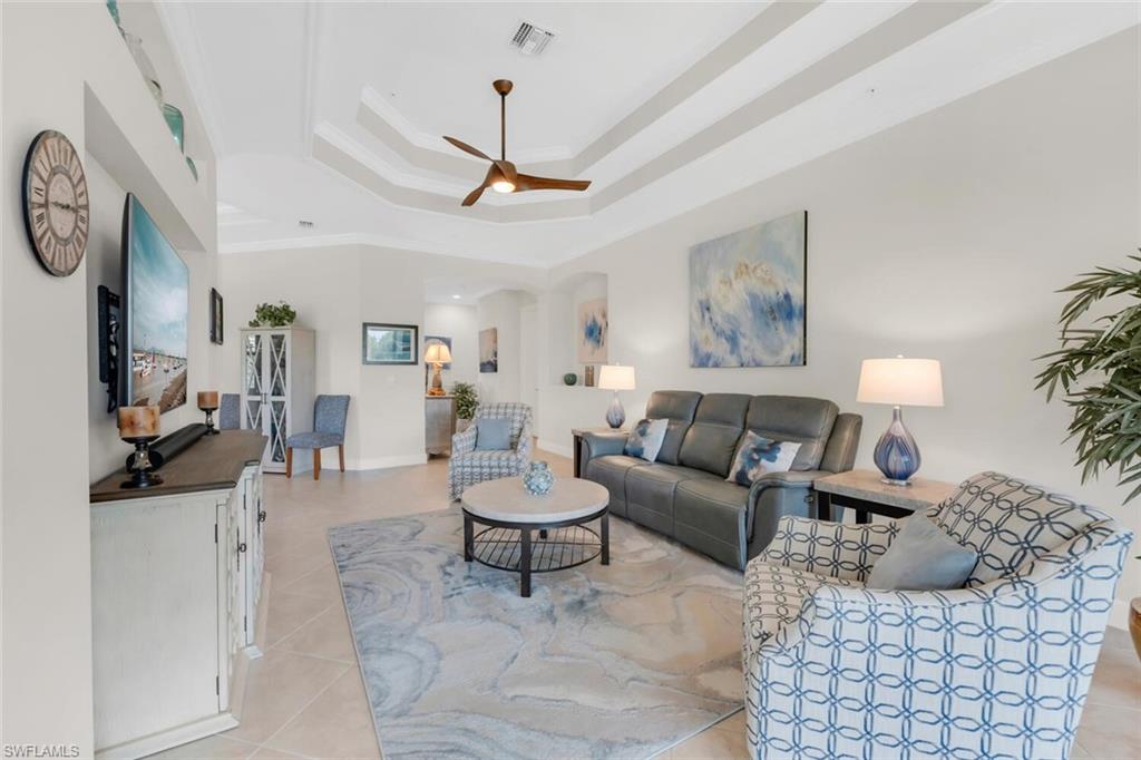 Welcome to Covent Garden, located in the esteemed golf community of Twin Eagles. This beautifully appointed 2nd story coach home is ideal for year-round living or family vacation retreats. The property boasts an open floor plan that includes 4 bedrooms and 2-and-a-half bathrooms. Additional features include an attached 2-car garage, hard-surface flooring throughout the upstairs living area, a spacious laundry room, and storm smart electric screens on the lanai. This home will be sold fully furnished with a few exceptions. The ample screened lanai provides a picturesque lake view, perfect for enjoying your morning coffee or unwinding with friends and family after a long day of activities. Full golf membership will convey to one of Naples’ most prestigious golf clubs, featuring 2 championship golf courses. Additional amenities comprise of a Himalayan putting green, club dining at the newly renovated clubhouse, Har-Tru tennis courts, pickle-ball, bocce, resort-style swimming pool with pool-side Tiki bar and grill, state-of-the-art fitness center, and a very active social calendar. Plan a tour soon and see what resort style living is all about! New Roof 2022 New AC 2025