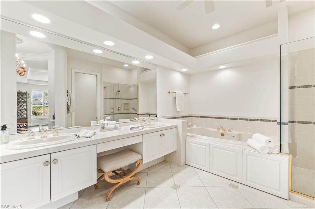 Stunning End Unit in Kensington Golf & Country Club. Experience the best of Naples living in this beautifully maintained end-unit condo located in the prestigious gated community of Kensington Golf & Country Club. This light-filled residence lives like a single-family home and offers breathtaking panoramic views of the lake and golf course. The split Floor plan is ideal for family and friends. Over 2,000 sq. ft. with 2 bedrooms plus den / 2 full baths. The den with a garden door could easily accomodate a 3rd bedroom and / or home office. From the moment you walk in, you're welcomed by a wall of windows and sliding glass doors that bring the outdoors in. The open floor plan features tile flooring throughout the main living areas and warm wood-look flooring in the dining room and both bedrooms—blending elegance with easy maintenance. The kitchen is a chef’s delight, featuring quartz countertops, stainless steel appliances, and ample storage. The spacious primary suite offers lanai access and serene views, creating the perfect retreat. Enjoy peace of mind with electric hurricane shutters across the rear of the home. Step onto the screened lanai to unwind and soak in the tranquil setting—ideal for entertaining or relaxing. As a Kensington resident, you’ll enjoy optional club membership with access to world-class amenities including a newly renovated, multi-million-dollar clubhouse, fine and casual dining, a resort-style pool, a top-tier fitness center, Har-Tru tennis courts, pickleball, bocce, and more. Whether you're seeking an active lifestyle or a peaceful sanctuary, this home checks every box for quality, upgrades, location, and value.