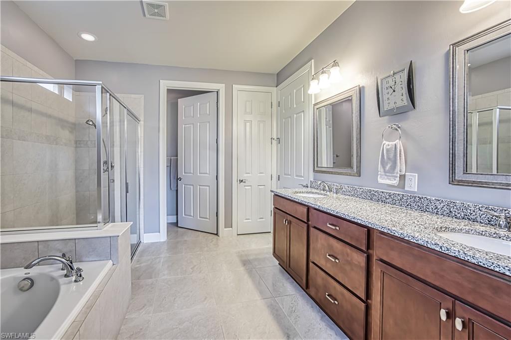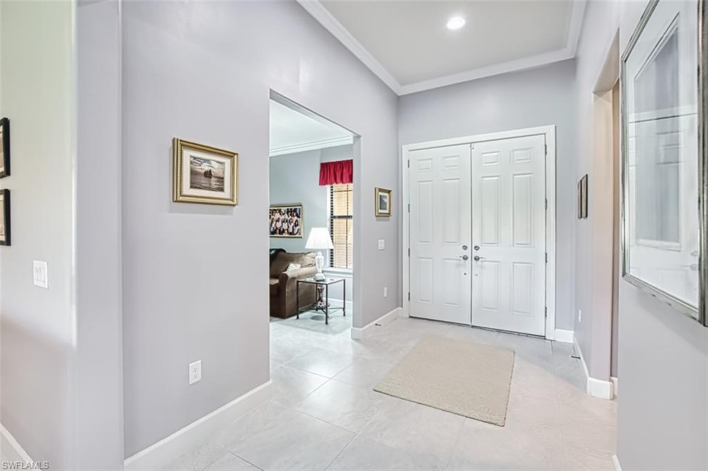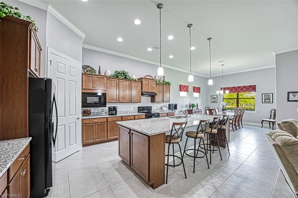 Highly Desirable Pinnacle Home in Corkscrew Shores Don’t miss this rare opportunity to own a sought-after Pinnacle model, perfectly situated on a private, oversized lot in the award-winning community of Corkscrew Shores. This spacious home offers 3 bedrooms, a den, and a 3-car garage—designed for both comfort and functionality. Step through the elegant double-door entry into an open floor plan featuring large-format tile in soft, neutral tones throughout the main living and wet areas. A standout feature is the oversized bedroom suite near the foyer—ideal as a second master or guest suite—with a large walk-in closet and en-suite bath. Across the hall, the den offers flexible space for a home office, gym, or media room. The heart of the home is the expansive great room, seamlessly connecting living, dining, and kitchen areas. An extended kitchen island provides extra seating and a dry bar setup, while the large pantry supports family life, and hosting large groups. The great room opens to a spacious lanai—perfect for entertaining. The owner’s suite boasts tray ceilings, dual sinks, a soaking tub, separate shower, and an impressive walk-in closet. The laundry room includes both cabinet and closet storage. The garage features a 4-foot extension, epoxy floors, utility sink, and pull-down attic stairs—ideal for hobbies and storage. Enjoy exceptional privacy with large side yards, thanks to the unique lot layout. Corkscrew Shores amenities include: a 240-acre lake with a boat ramp, fishing pier, kayak launch, walk-in resort-style pool, hot tub, restaurant, fitness center, spa, tennis, pickleball, bocce, and scenic nature trails. Located in Estero, near FGCU, RSW Airport, shopping, dining, and entertainment. Low HOA fees and no CDD tax make this home a smart and luxurious choice.