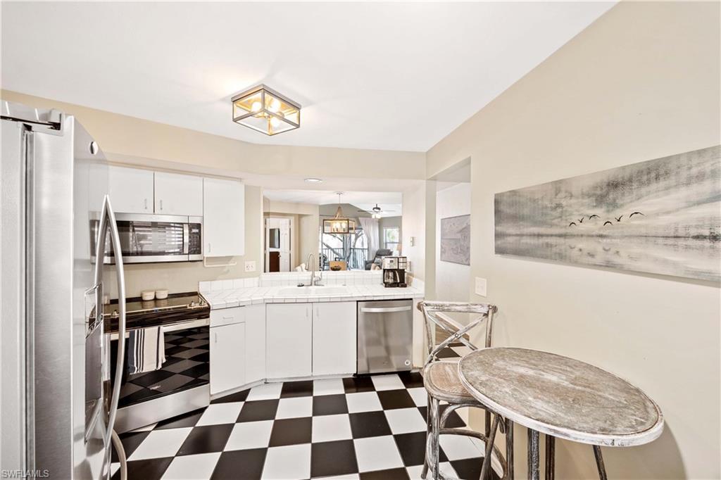 Welcome to this beautifully updated and fully furnished 3-bedroom, 2-bath top-floor corner unit, perfectly situated in the heart of Naples. Just under 3 miles to the white sands of Clam Pass Beach, this condo offers the ideal blend of tranquility and convenience. Enjoy an open floor plan with vaulted ceilings, hard surface flooring throughout, and neutral tones that create a light and inviting atmosphere. The kitchen features plantation shutters, newer appliances, and all-new window treatments throughout the home. Relax on your private screened balcony with peaceful views, or take advantage of the community amenities including a pool, tennis, pickleball, and more. Located adjacent to Quail Run Golf Course, where play is available without the fees of a bundled golf community. This unit includes a dedicated parking space directly below, plus an extra storage unit for added convenience. Centrally located just off Pine Ridge Road, you’re minutes from shopping, dining, and Naples' best beaches.