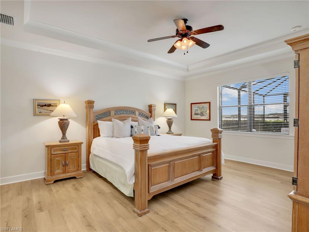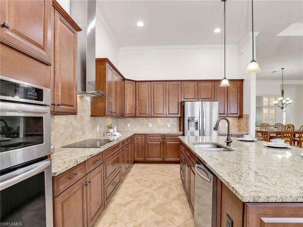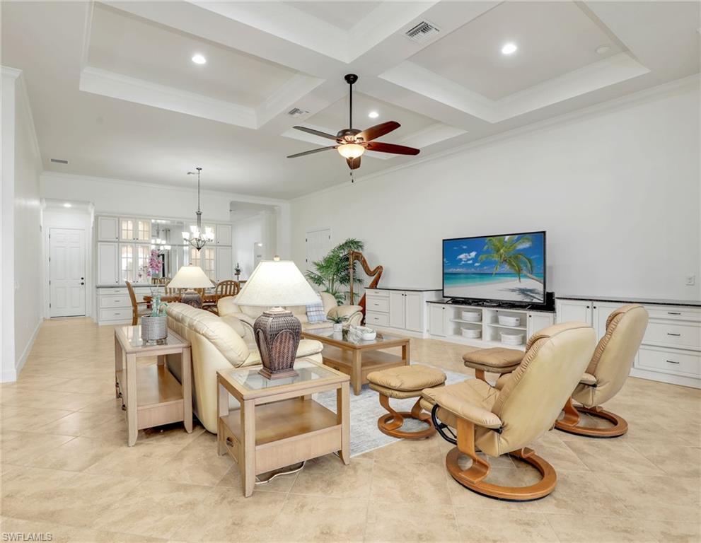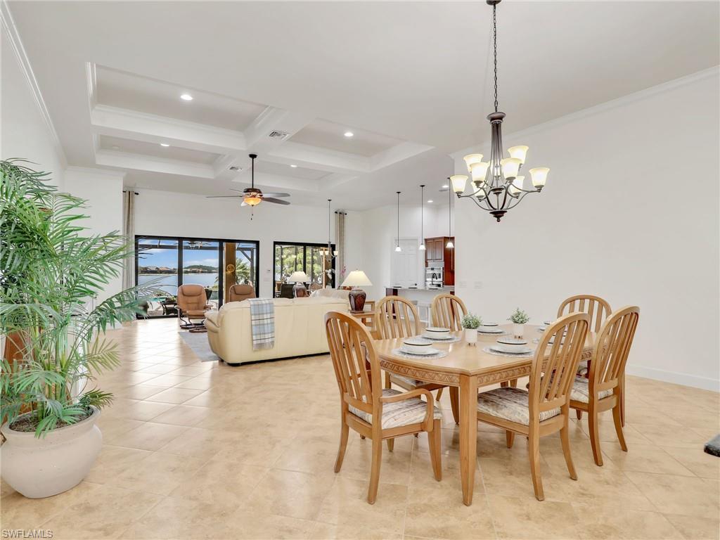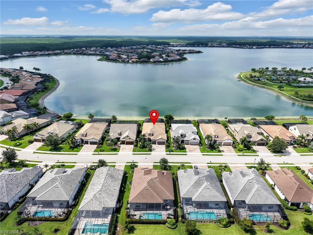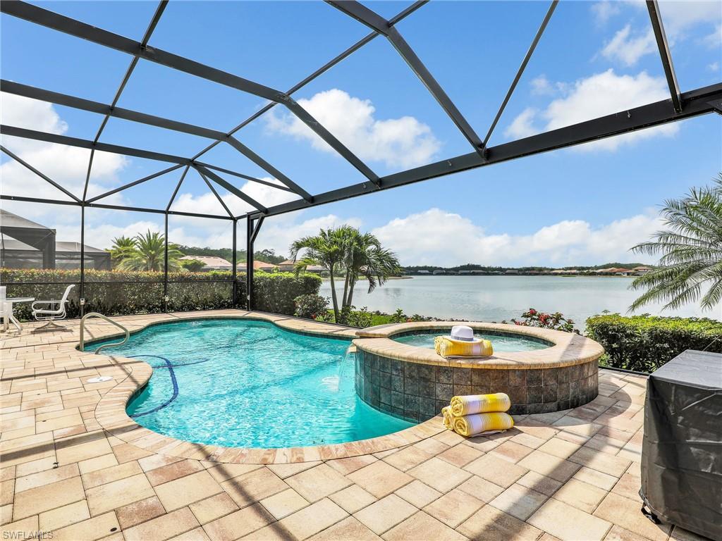This home may need some updating to your liking but the floorplan, square footage and view are amazing- location location location! 3-bedroom+den/office, 3-bath home on one level is situated on a desireable north/south lot with breathtaking views of the sparkling 240-acre lake that is the heart of Corkscrew Shores. Enter through double entry glass doors into a bright, neutral palette that looks right through to an expansive water view. The gourmet kitchen has a walk-in pantry, cafe' seating area and large center island perfect for gathering with family or friends. A double set of hurricane impact sliding glass doors seamlessly connect the interior to the outdoors, allowing lots of natural light while offering easy access to the backyard oasis. The grand great room includes 14' coffered ceilings adjacent to an open dining space, in which both areas feature beautiful white built-in cabinetry ideal for showcasing your favorite decor or personal treasures while also offering abundant storage for a tidy and organized space. Step outside to a backyard oasis - a covered lanai with three ceiling fans, heated pool and spa, expansive poolside deck for lively entertaining or serene lounging and a panoramic screen enclosure to take in the natural beauty. For those who love to entertain and dine al fresco, utlitize the outdoor kitchen space and motorized roll-down screens to enjoy an intimate, shaded environment. This home also features two good-sized guest bedrooms, each access to a full bathroom ideal for family and guests. The office/den offers the perfect versatile space to either work from home or read a book. The 4' extended 3-car garage provides extra space for storage, a workshop or accommodate larger vehicles plus a brand new 4-ton AC system. Corkscrew Shores is a prestigious, gated community in Estero, Florida located between Naples and Fort Myers, a prime location with access to outdoor recreation, top-tier amenities, or proximity to major attractions and the SWFL airport. No flood zone, No CDD fees and no hefty resort or club fees.