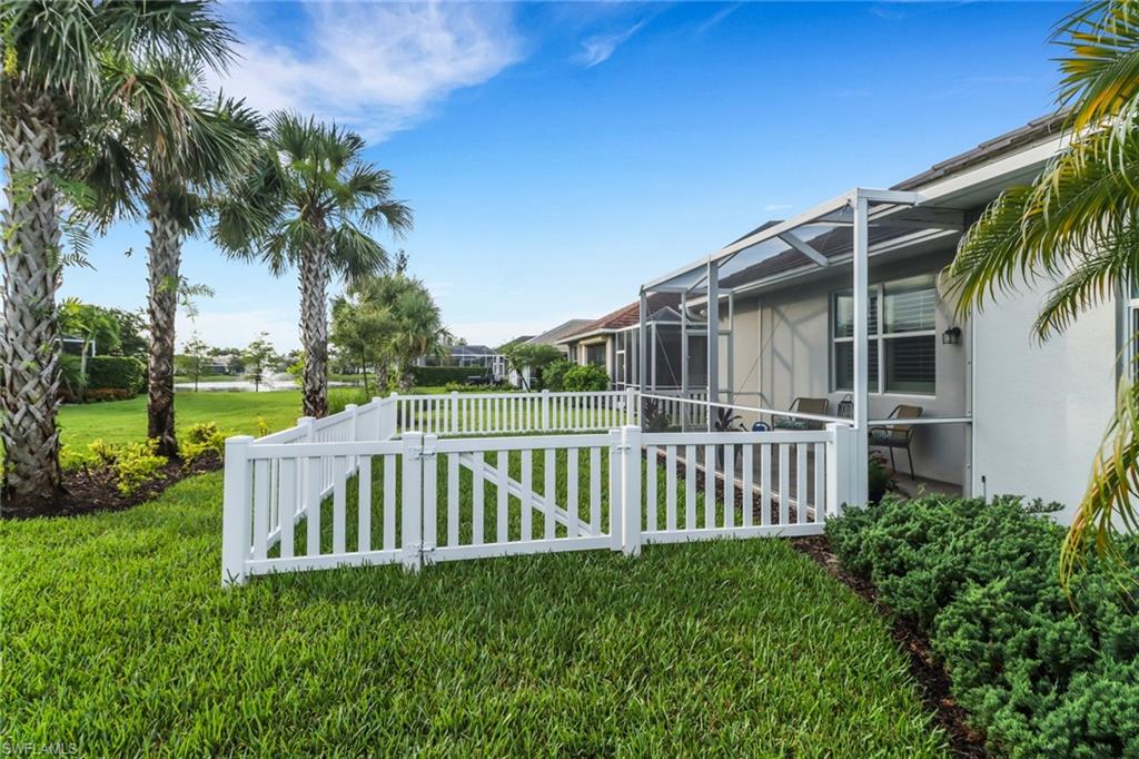 This stunning Martin Ray floor plan is a showcase of elegance, functionality, and premium upgrades. Recently professionally painted, the home features real wood floors, custom trim work, crown molding, and plantation shutters throughout. Brand new designer light fixtures and premium DC ceiling fans elevate each room’s style and efficiency. The chef’s kitchen impresses with a Level 5 KitchenAid appliance package, natural gas range, and a butler’s pantry complete with a wine fridge. The optional sunroom adds valuable extra living space, while the drop zone enhances everyday organization. Luxurious finishes continue with Cheyanne 8-foot doors, tile-to-ceiling showers, custom closets in every room, and hurricane impact glass windows for safety and peace of mind. The expansive laundry room includes a front-loading washer and gas dryer, utility sink, and ample cabinetry. The garage offers built-in storage with custom cabinetry and slatwall organization, while a tankless water heater provides endless hot water. Outdoors, enjoy a newly installed fenced dog run—perfect for pets and privacy. Located in Tidewater, a premier 55+ active adult community, residents enjoy a vibrant lifestyle with access to a resort-style pool and spa, barefoot bar, fitness center, movement studio, pickleball and bocce courts, BBQ grills, fire pit, and a full calendar of events curated by the on-site lifestyle director.