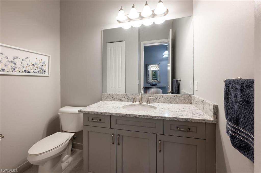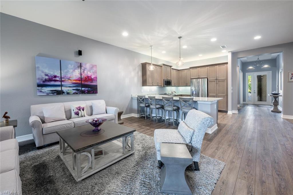 Introducing the "Tribeca" model at Stonecreek in North Naples a GL Homes Community. This highly sought after floor plan features 3 bedrooms, plus den/study, 2 full bathrooms, and 1 half bath, making this the perfect use of space for both comfort and functionality. The open floor plan with 10' ceilings seamlessly connects the living spaces, ideal for family gatherings and entertainment. The kitchen is complete with modern stainless steel appliances including a NATURAL GAS range, french door refrigerator, granite counters, and 42" Maple cabinetry. The peninsula comfortably seats four, making it ideal for casual dining and entertaining. The spacious primary bedroom features a tray ceiling, adding architectural interest and a touch of luxury, his & her walk-in closets, ensuite features glass shower enclosure and double vanity sinks. Stonecreek offers a variety of recreational options for residents, including indoor and outdoor basketball courts, tennis, pickleball courts, volleyball, splash pad, playground, game room, yoga room, and resort-style pools with cabanas and lounge chairs. An on-site full time activity director plans a variety of activities for everyone! Stonecreek is located off Logan Blvd with convenient access to multiple grocery stores, dining, and entertainment venues just minutes away.