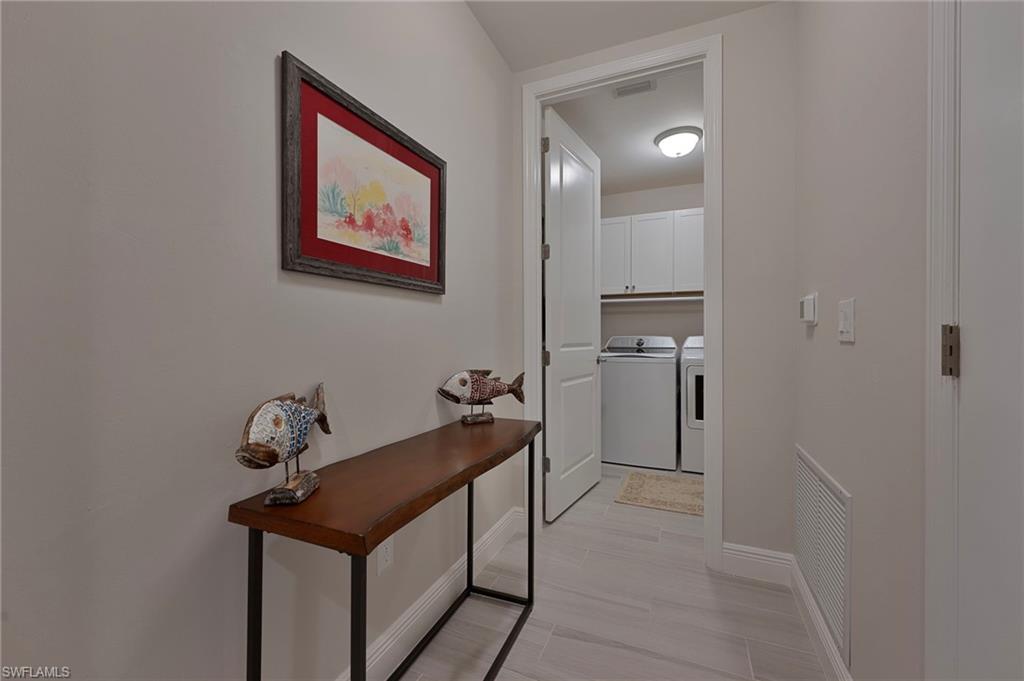Recently constructed, first-floor carriage home in the gated community of Seychelles, close to downtown Olde Naples, vibrant 5th Avenue, and Gulf beaches. Inspired by British-West-Indies architecture, this 2-bedroom, 2-bath residence offers a light and airy design with volume ceilings, expansive tile flooring, and a screened lanai that spans the length of the home for seamless indoor–outdoor living. The kitchen features gleaming quartz countertops, stainless steel appliances, crisp cabinetry, and a pantry. The open-concept layout connects the kitchen, dining, and living spaces, creating the perfect setting for entertaining or relaxing. The spacious primary suite offers a spa-inspired ensuite bath, while the guest bedroom and bath provide comfort and privacy for family and friends alike. A 1-car garage adds convenience and extra storage. Resort-style amenities include a 4,500 sq. ft. clubhouse, sparkling pool and spa, fitness center, fire pit gathering area, and an event lawn for socializing and enjoying Naples’ stunning sunsets. With its prime location, exceptional finishes, and vibrant community atmosphere, this home is the perfect blend of coastal elegance and modern comfort.