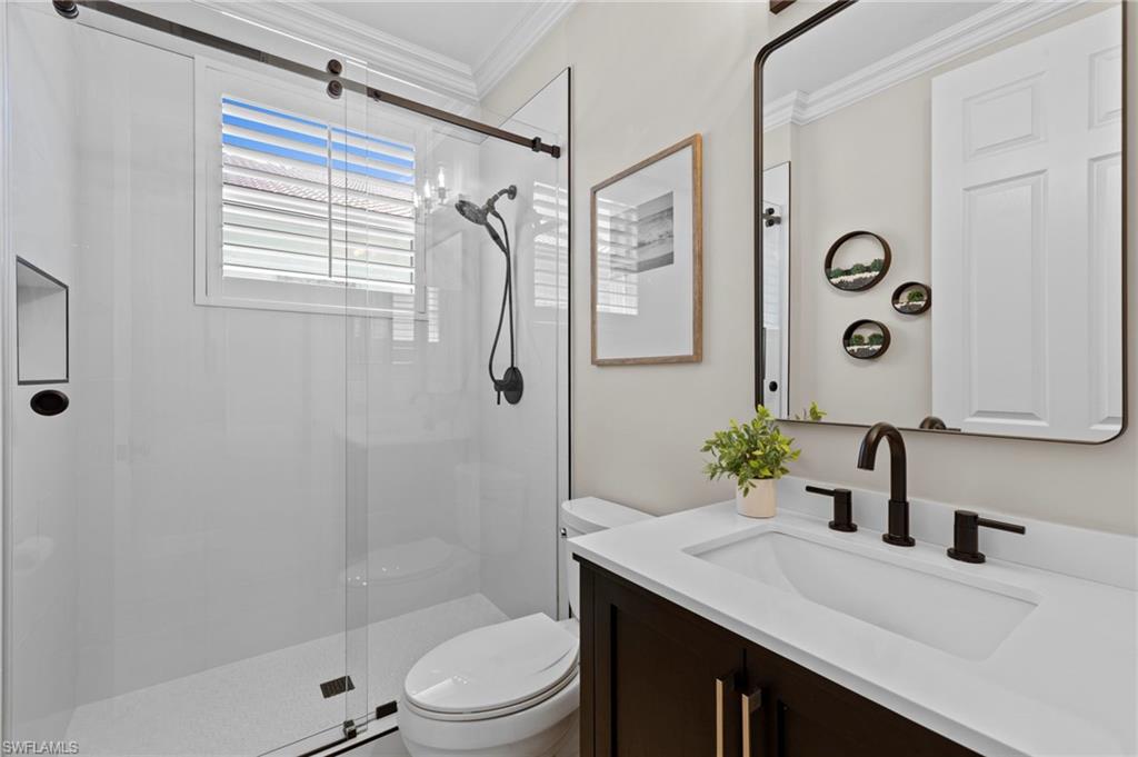 Imagine coming home to a quiet cul-de-sac in Saturnia Lakes where timeless updates, spacious living, and resort-style amenities await you. This 4-bedroom, 3-bath, 3-car garage home offers nearly 2,700 sq. ft. of thoughtfully designed living space, blending comfort and sophistication with multiple living and dining areas, fully updated kitchen and baths, and a convenient laundry room with utility sink and backsplash. The gourmet kitchen shines with quartz countertops, GE stainless appliances, a Sollevare wine fridge, and a functional breakfast bar — perfect for gatherings. Outside, enjoy a spacious fenced backyard that serves as a blank canvas with room for the custom pool of your choice, plus an extended enclosed lanai for entertaining. Peace of mind comes with storm protection (accordion & fabric shutters), a 2021 roof, hard-wired Ring cameras, and Nest thermostats/smoke detectors (HVAC 2019 & 2023). Beyond the property, Saturnia Lakes offers an amenity-rich lifestyle with a clubhouse, resort-style primary pool, separate lap pool, children’s/wading pool, tennis, basketball, walking trails, and more. Located in an A+ school district and minutes to Logan Landing, Founders Square, and Naples’ best shopping and dining. HOA fees at Saturnia Lakes offer exceptional value, covering high-speed internet, cable TV, and alarm monitoring, along with full landscaping, irrigation services and access to all of the beautiful amenities Saturnia Lakes is known for, making this an unbeatable lifestyle package. Another valuable perk of the community is its convenient second residents’ entrance and exit on Logan Boulevard, offering quick and easy access in and out With extensive upgrades and modern finishes, this home is truly move-in ready and deserves either a first or second look — it shows beautifully.