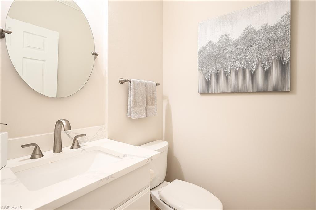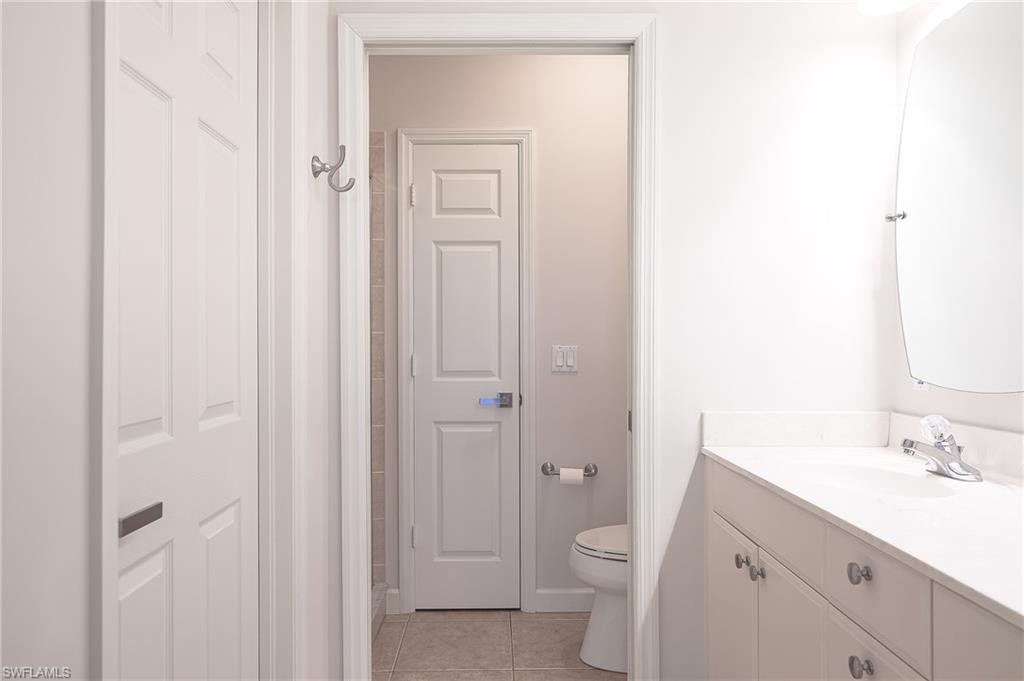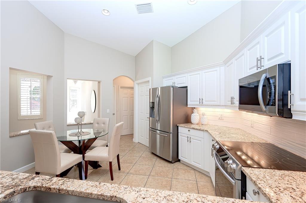 Step into modern luxury with this freshly updated 1,818-square-foot second-floor Carriage home in the gated community of Bridgewater Bay. Showing like a model home, the neutral tile floors, soothing white palette, and wood plantation shutters create a bright, contemporary canvas. Custom crown molding and unique woodwork beautifully accent the unit. The gourmet kitchen dazzles with lustrous granite countertops, a wave-tile backsplash and LED ceiling lights. You’ll find premium stainless-steel appliances and a generous pantry with a frosted glass-paneled door. In the tranquil Master suite, oversized windows frame a serene lake view, while a custom barn-style door leads to an expansive walk-in closet. The spa-inspired bathroom features a dual-sink vanity, stainless fixtures, and crisp modern mirrors. Two additional bedrooms impress with a cathedral-wood accent wall in one and sleek ceiling fans in both, complemented by an updated hall bath stocked with contemporary Kohler fixtures. Striking modern lighting throughout the home enhances every moment from morning coffee to evening relaxation. Just a leisurely walk away from your door plentiful amenities await, including a sparkling resort-style pool and spa, as well as a separate lap pool. Enjoy pickleball and tennis courts, a recently renovated Clubhouse, and a fitness center with steam room and sauna. Bridgewater Bay offers a vibrant social calendar, all just minutes from white-sand beaches, Fifth Avenue’s fine dining, and world-class shopping! Imagine yourself unwinding in this serene retreat! Schedule your private tour today to experience effortless elegance and resort-style living in one exceptional home!