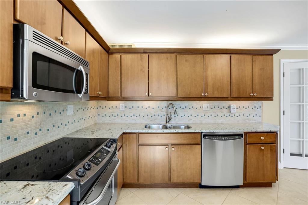 Perfect Timing! Just reduced! BEST VALUE WITH 2+Den, IMMEDIATE GOLF PRIVILEGES! Wilderness Country Club is a tranquil tropical retreat that captures the essence of "Old Florida" charm, the perfect blend of luxury and seclusion. This 2 Bedroom PLUS Den/Flex room is ready for immediate occupancy and tastefully renovated! Join one of Naples hidden gems at the Wilderness Country Club with no waiting lists and immediately play this gorgeous Arthur Hills designed 18-hole masterpiece offering driving range and practice green. Nestled in the heart of Naples, this updated first floor condo has amazing views of the lake and the 18th fairway. Your private patio with a Western exposure will provide you with awe inspiring sunsets while enjoying the serene landscaping and abundant wildlife. This light and bright residence has a beautifully appointed kitchen with solid wood cabinetry, stainless steel appliances and a single temperature Eurocave 84 bottle wine cooler with two larger shelves for Magnum bottles. Newer HVAC and tankless HWH brings peace of mind. Convenient assigned covered parking is included as well as a golf cart with its own garage. Residents enjoy the newly built 5 Star clubhouse with indoor and outdoor dining. The Library/Card room is waiting for you to pick up a new read, play bridge or join a spirited game of Mahjong. This pet friendly community also features 5 heated saltwater pools, 4 lighted Har-Tru tennis courts, Pop-Tennis leagues, Bocce Courts, Croquet Lawn and Dog Park. Only 4 miles away is the USOP National Pickleball Center featuring 65 courts, pro shop and lessons. Fitness buffs enjoy special membership privileges at the Briggs Wellness Center 2.8 miles away. Located minutes from world famous 5th Ave/3rd Street, Venetian Village, Waterside Shoppes, Mercato and Naples pristine beaches! This amazing and luxurious lifestyle ownership opportunity makes Wilderness Golf Club one of Naples most unique golfing communities.