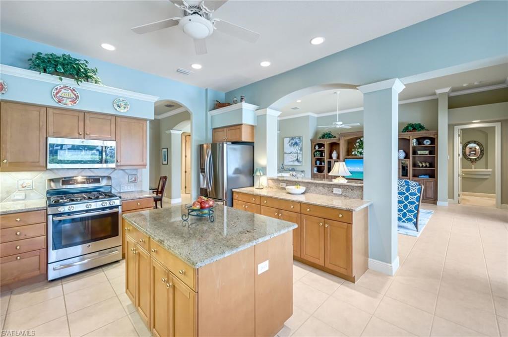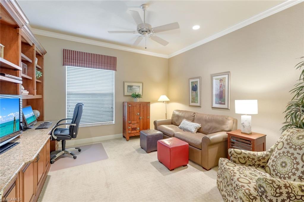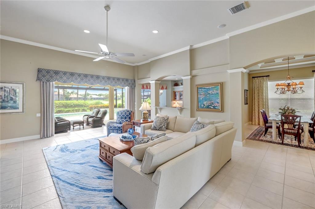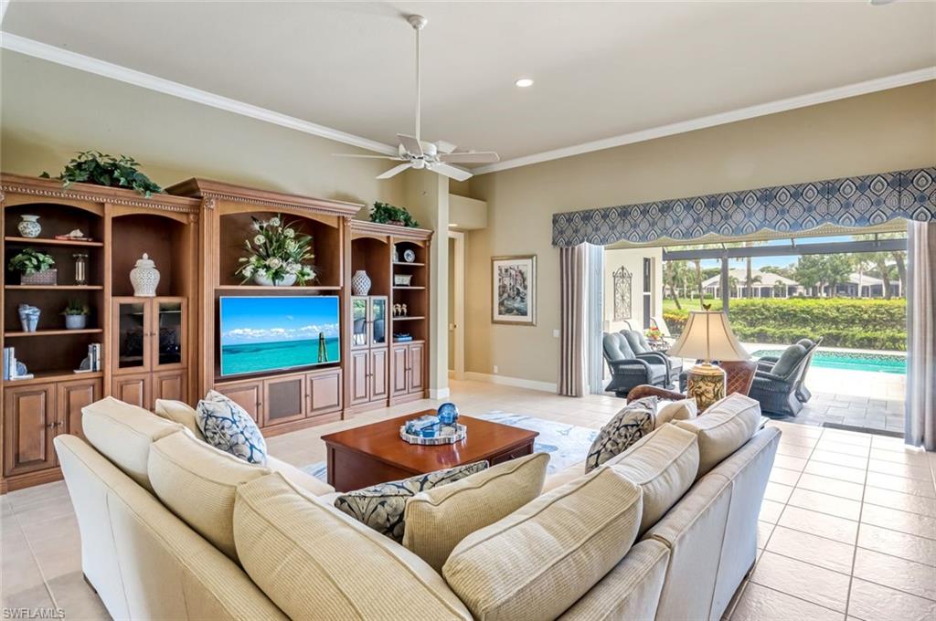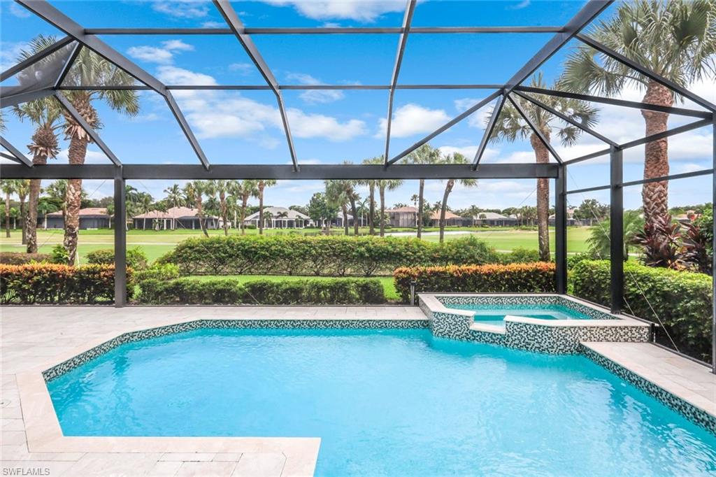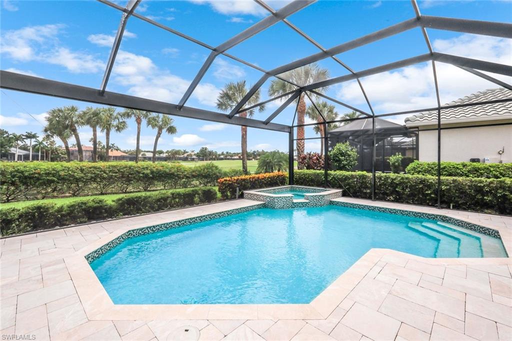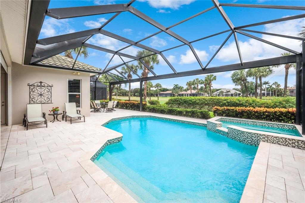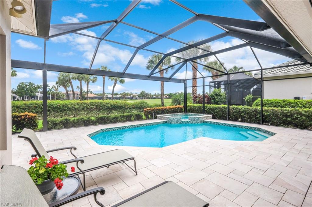 Rarely available and highly sought-after, this Bardmoor II floor plan is offered with an OPTIONAL FULL-GOLF MEMBERSHIP and features 3 bedrooms plus a den, 2.5 baths, an oversized 2.5-car garage 20 x 29, and an additional 6 X 10 FOOT AIR CONDITIONED STORAGE ROOM in garage ideal for crafts or extra storage and a 2020 NEW ROOF. Southern exposure enhances the beautifully renovated pool, spa and natural stone decking that expands the width of the home with the extended picture-screened lanai spanning the full width of the home and providing seamless lake and golf course views and 2023 pool heater. The NEW lanai also features electric storm hurricane protection, allowing for a convenient lock-and-go lifestyle. The open great room floor plan showcases volume ceilings, abundant natural light, and a custom craftsman-style entertainment center. The fantastic kitchen is perfect for entertaining family and friends, complete with a morning room breakfast area overlooking the pool, natural gas cooking. The den includes an impressive built-in with generous storage and workspace. The primary suite offers 2 walk-in closets, along with a spacious bath featuring a soaking tub and walk-in shower. Additional highlights include tile flooring throughout the main living areas and a utility room with sink. Ideally located near shopping, the airport, and Naples’ beautiful beaches, this home is offered with an optional full golf membership. Shadow Wood offers optional Club Memberships with 3 / 18 Hole Championship Golf Course, 9 Har-Tru Clay Tennis Courts, 3 Bocce Ball Courts and beautifully landscaped community for walking and biking. COMING SOON to Shadow Wood- RESORT POOL, DEDICATED KIDS POOL, POOLSIDE DINING AND BEVERAGE SERVICE AND 6 INDOOR PICKLEBALL COURTS. The Commons Club Membership offers Beach access, Private Beach Club and Pavilion, Attended Fitness center with classes and on-site fitness trainers, Pickleball, Social activities and private restaurant on-site, Playground, Lap-pool and Spa, Massage and Spa Services by appointment. Come Live Your Best Life in Shadow Wood.
