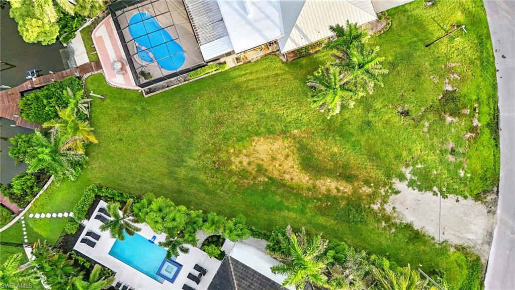 Come and enjoy this beautiful quaint neighborhood of the Carolands by Bonita Beach Survey and building plans are available per your request or bring your own design It is a pie shaped lot with a boat dock and lift on the Bay and one bridge to the Gulf Come and build your dream home. See building plans for existing lot in the attachments